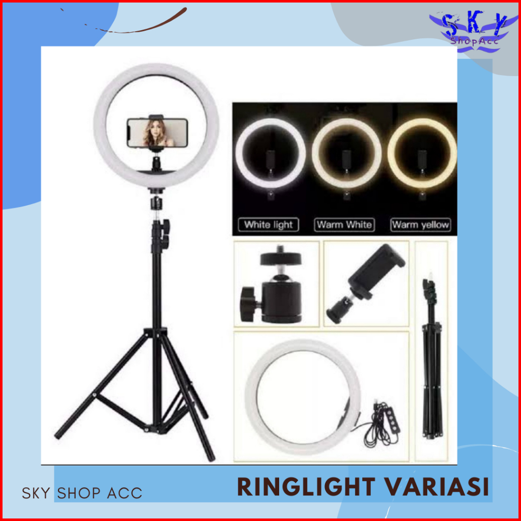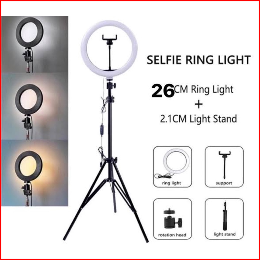 Ringlight 26cm 33cm Tripod 2.1m Fill Light Ring Selfie 3 Mode Warna