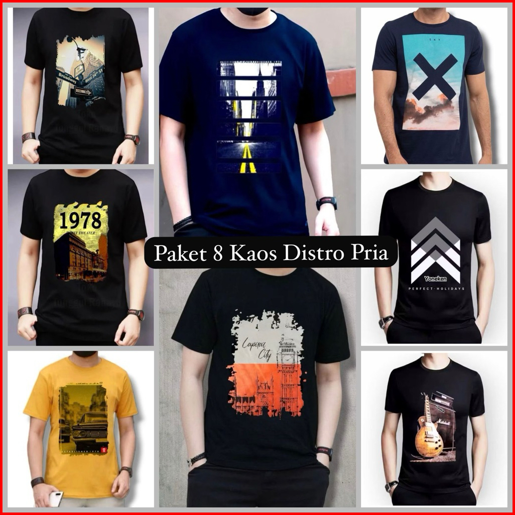Promo 100ribu Dapat 8 Kaos Kaos Distro Pria Premium Harga Banting Kaos Distro Motif Keren