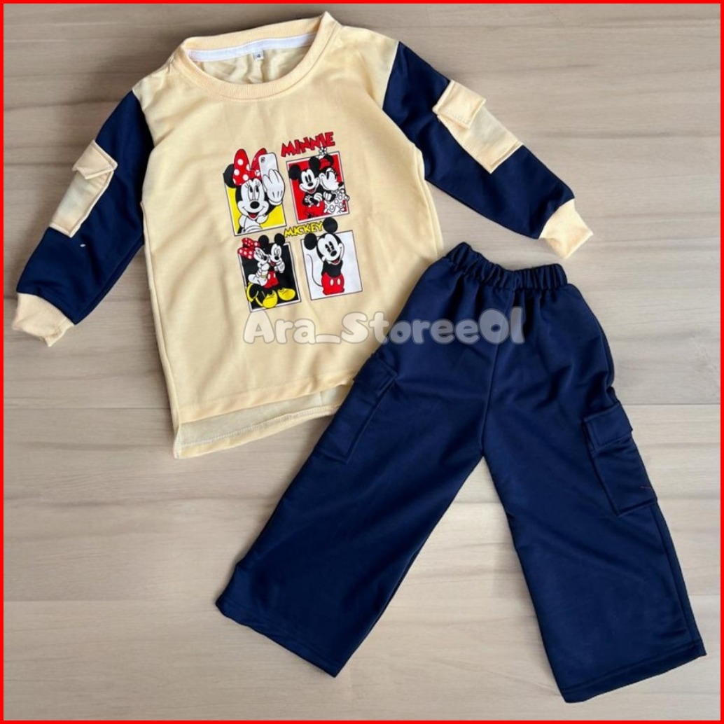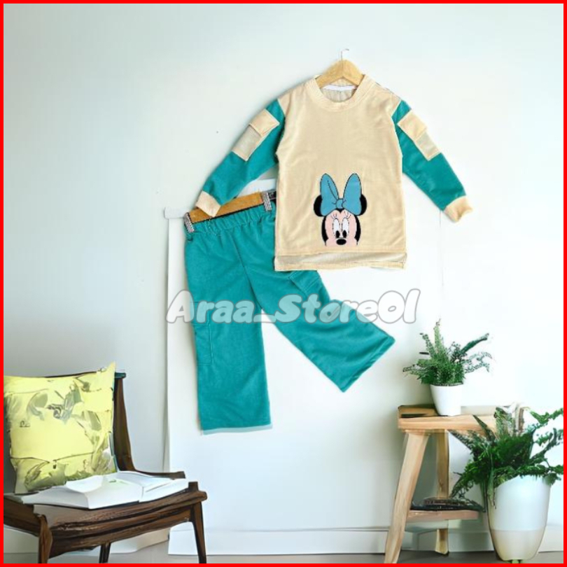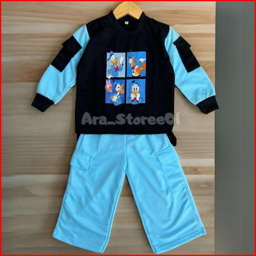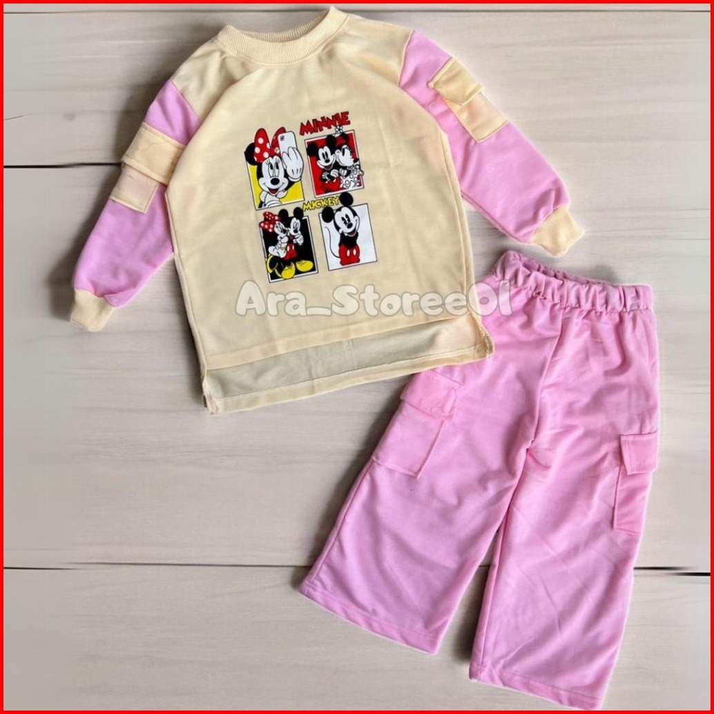 Setelan Cargo Anak Perempuan Mini Jisoo Oversize Usia 3-12 Tahun