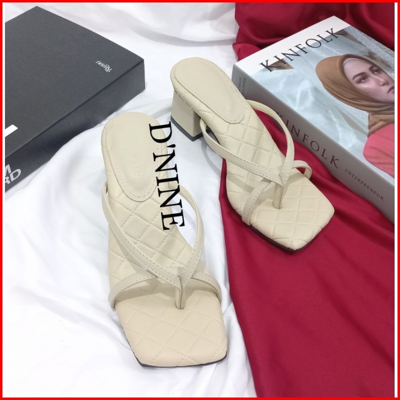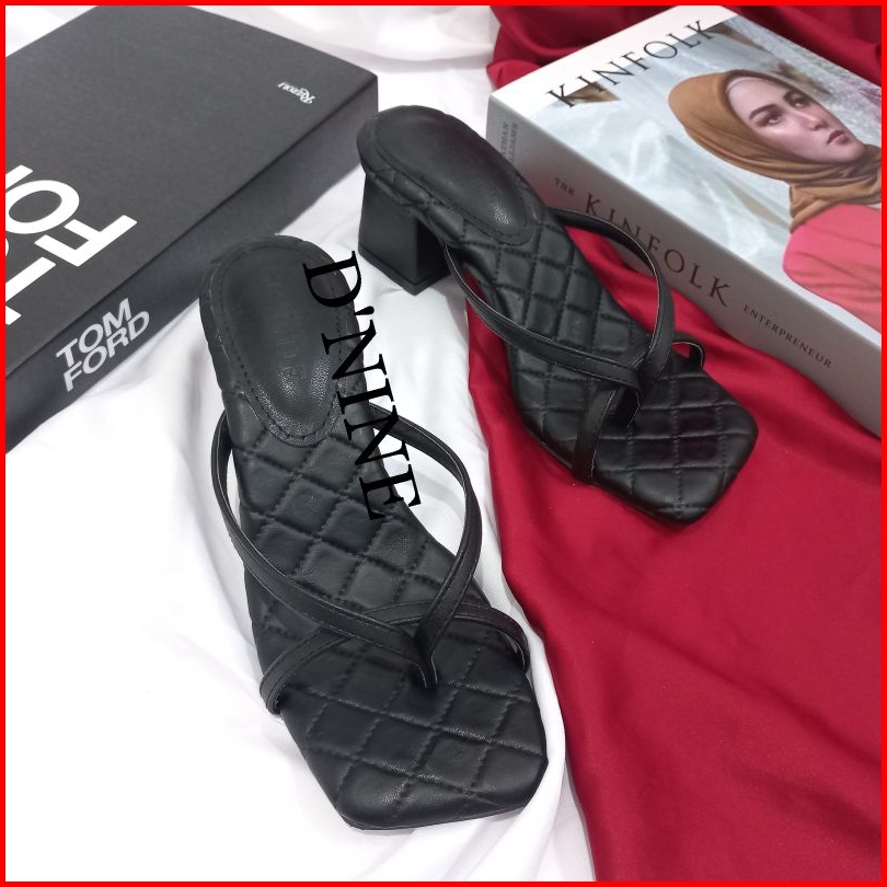Sandal Wanita Heels Tali Jepit Sintetis Anti Licin
