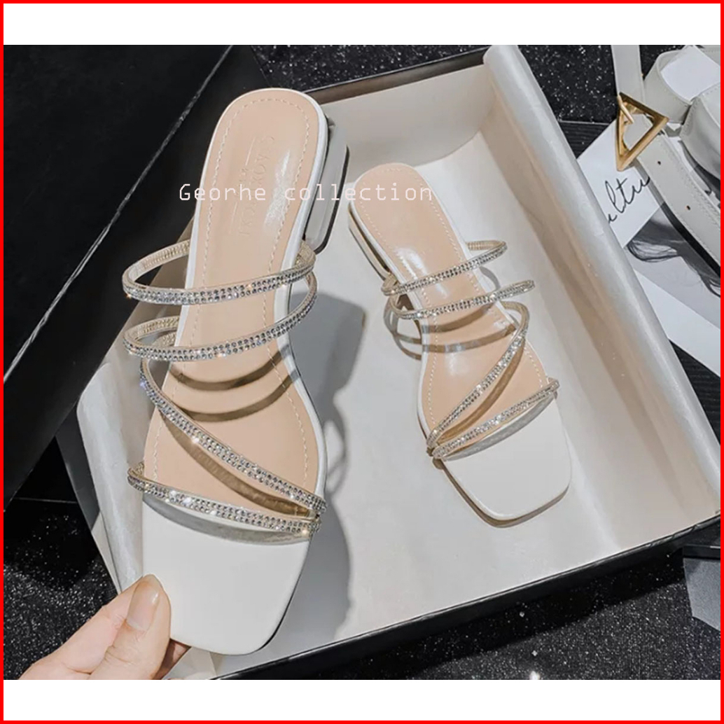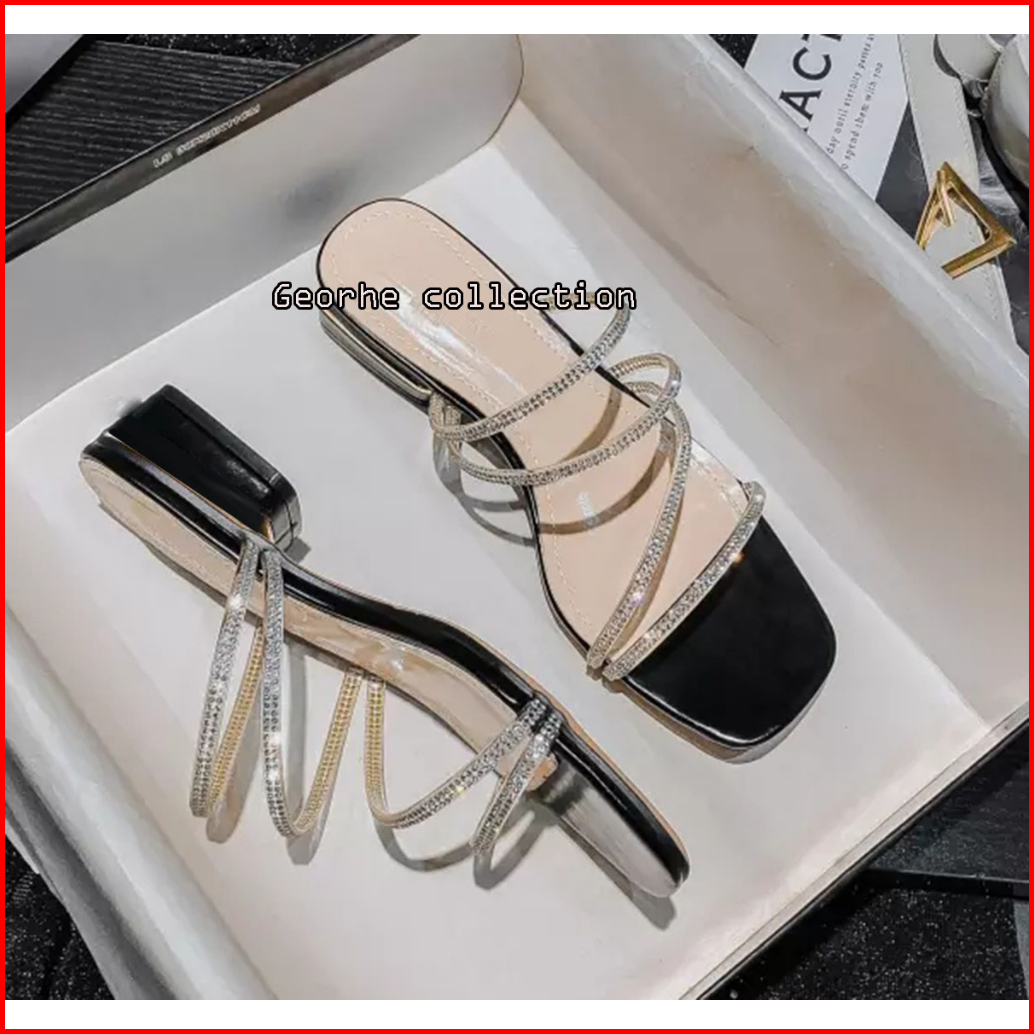 Sandal Heels Wanita 3 Cm Terbaru 2025 Model Tali Permata Sandal Wanita Kekinian