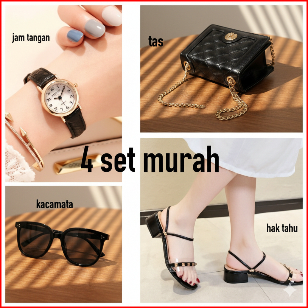 Paket 4 Set Beli 1 Dapat 4 Barang Hak Tahu Tas Jam Tangan Kacamata