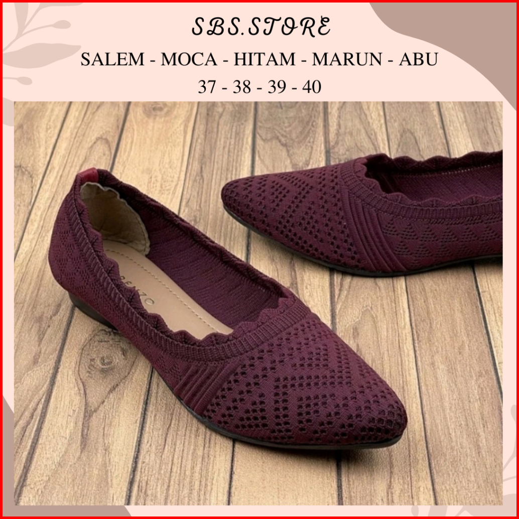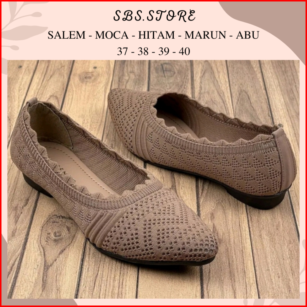 Sepatu Kerja Wanita Flat Shoes Rajut Import Sandal Balet Pesta Terbaru