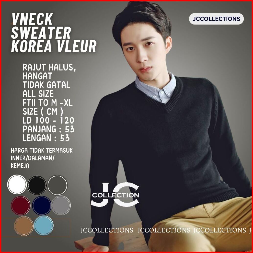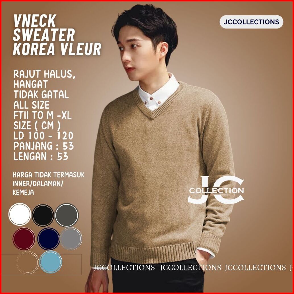 Sweater Rajut Pria Korea Style Vneck Vleur Jaket Sweater Pria - Jccollections