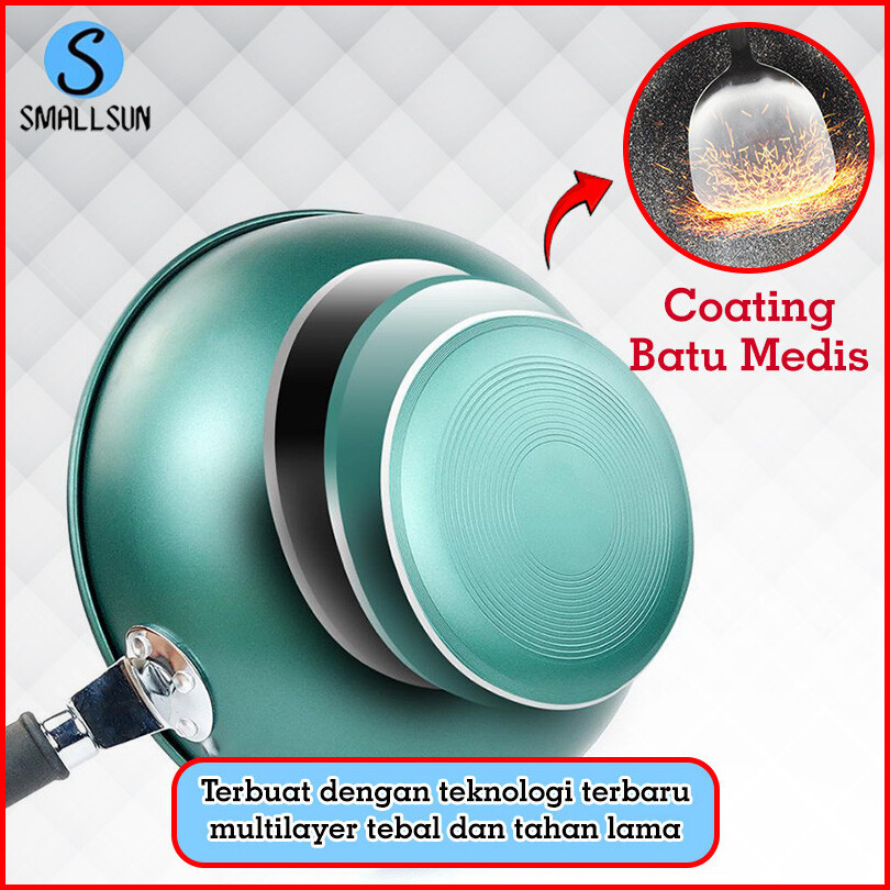 Ss Wajan Penggorengan Batu Medis Anti Lengket 32cm Frying Pan Panci Wok Pan Penggorengan Serbaguna Premium