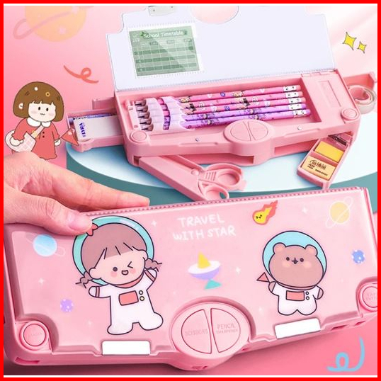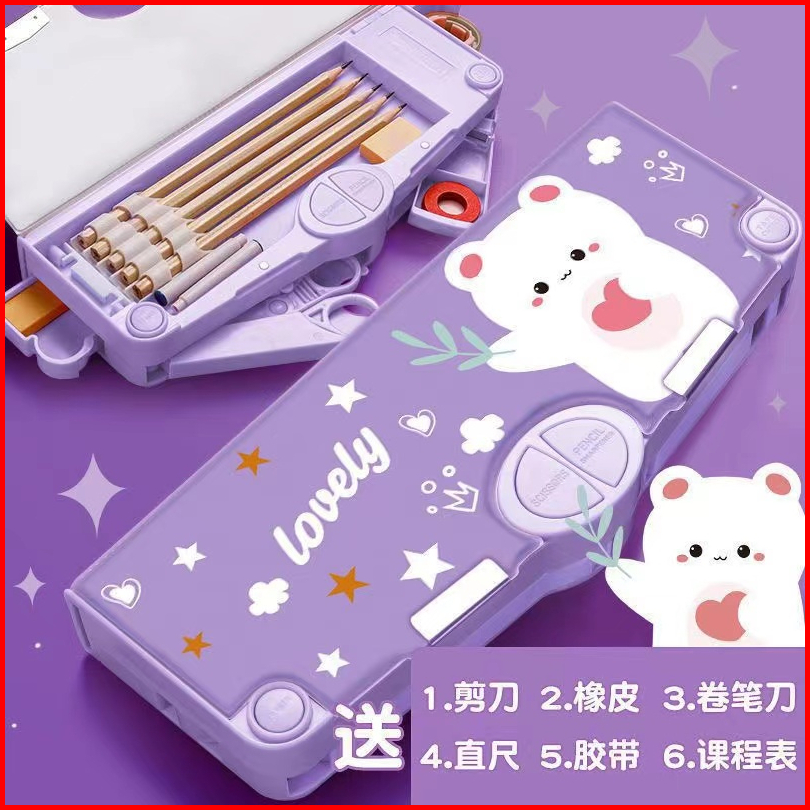 Tempat Pensil Anak Multifungsi Lengkap Dengan Magnet Gunting Rautan Penggaris Penghapus Tempat Pencil Anak Pop It Lucu