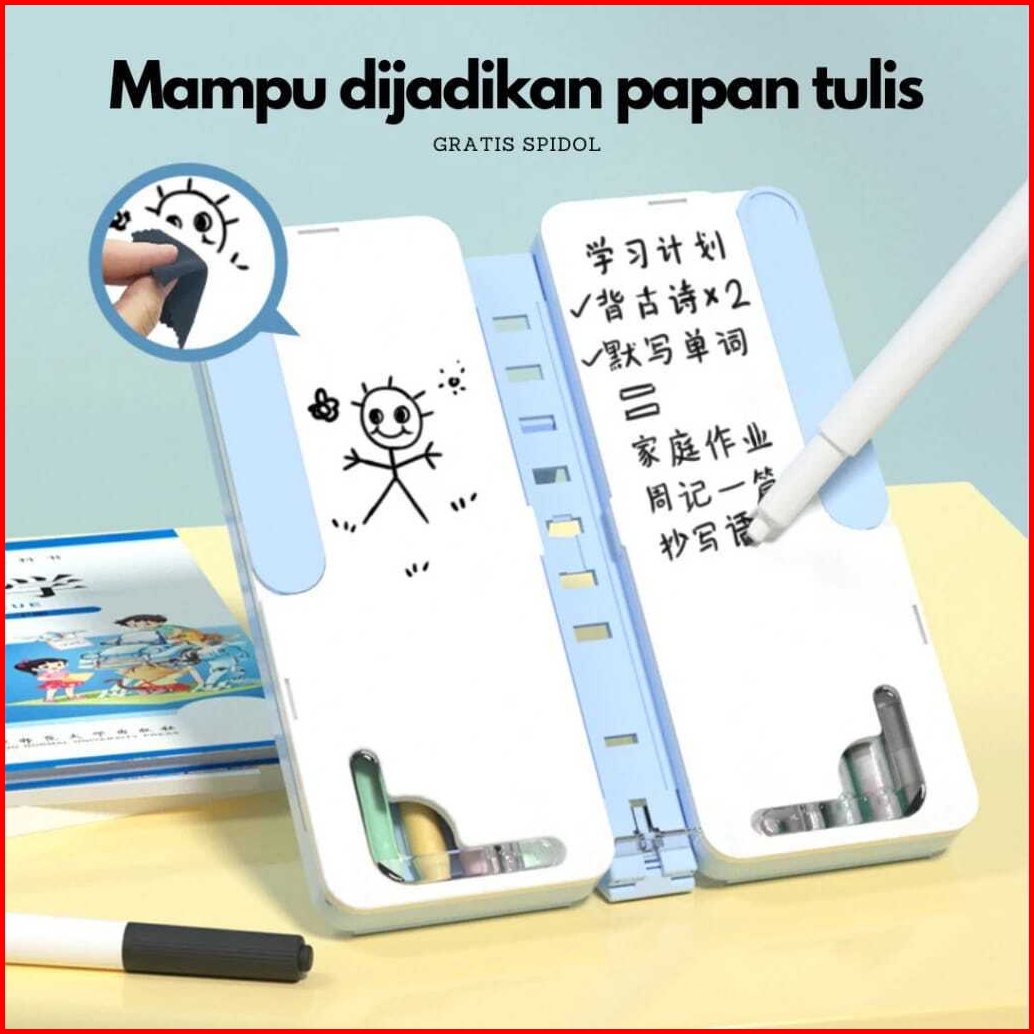 Mia K002 Kotak Pensil Lipat Multifungsi Dengan Papan Tulis Dan Tatakan Buku Tempat Pensil Serbaguna Kotak Pensil Anak Se