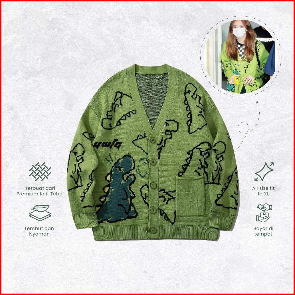 Dino Cardigan Krean Style Jisoo Bp Knitwear Unisex Rajut Premium -najahstore