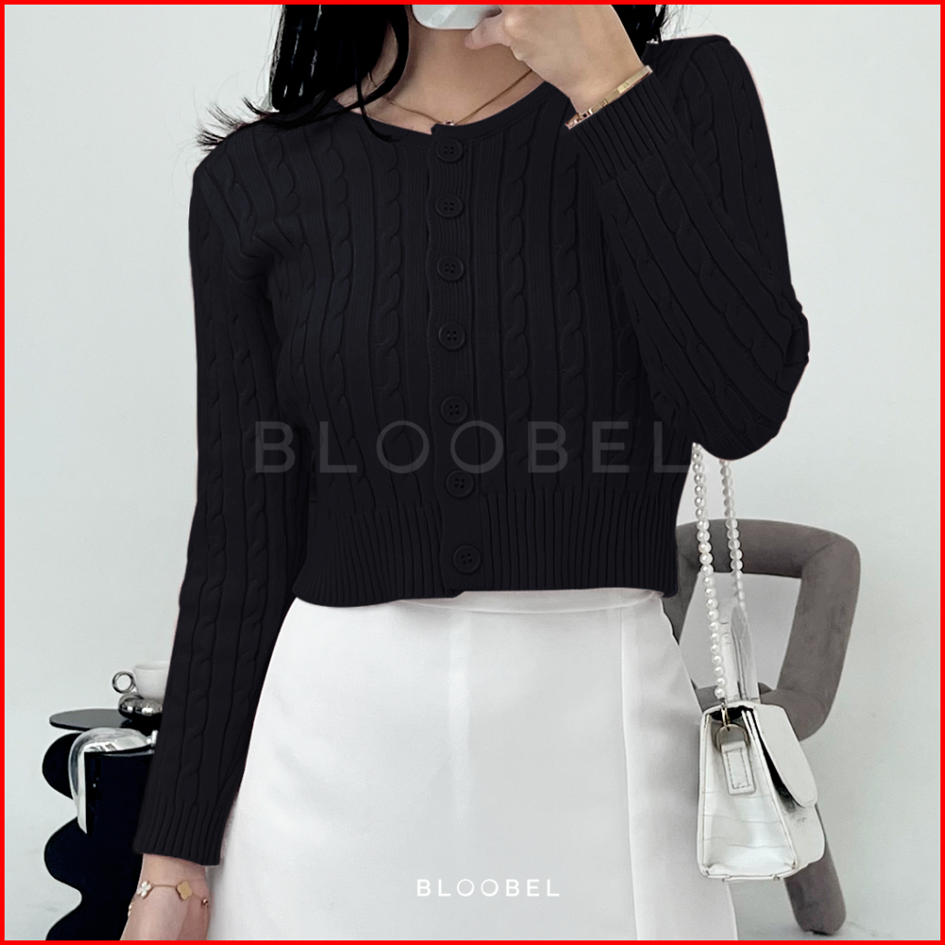 Bloobel - Gladys Cardigan Bpj068 Crop Cardigan Lengan Panjang Premium Kancing Aktif Outer Korean Long Sleeve Cardigan Bu