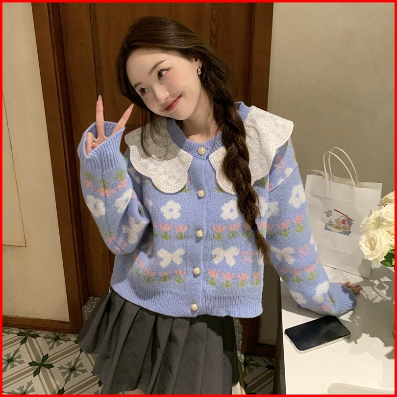 Tm - H345 Cardigan Harumi Lace Collar Knit Import