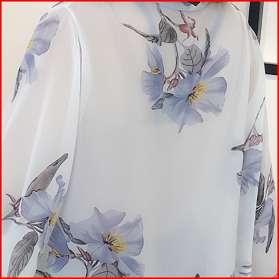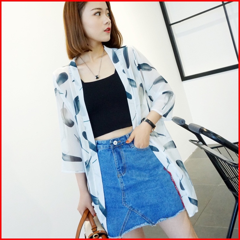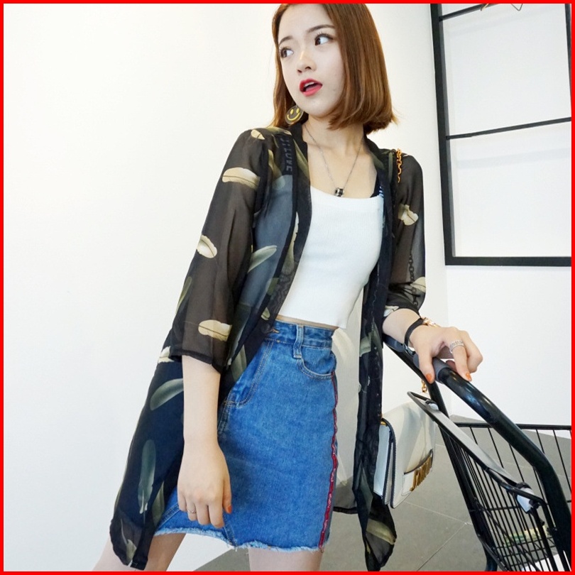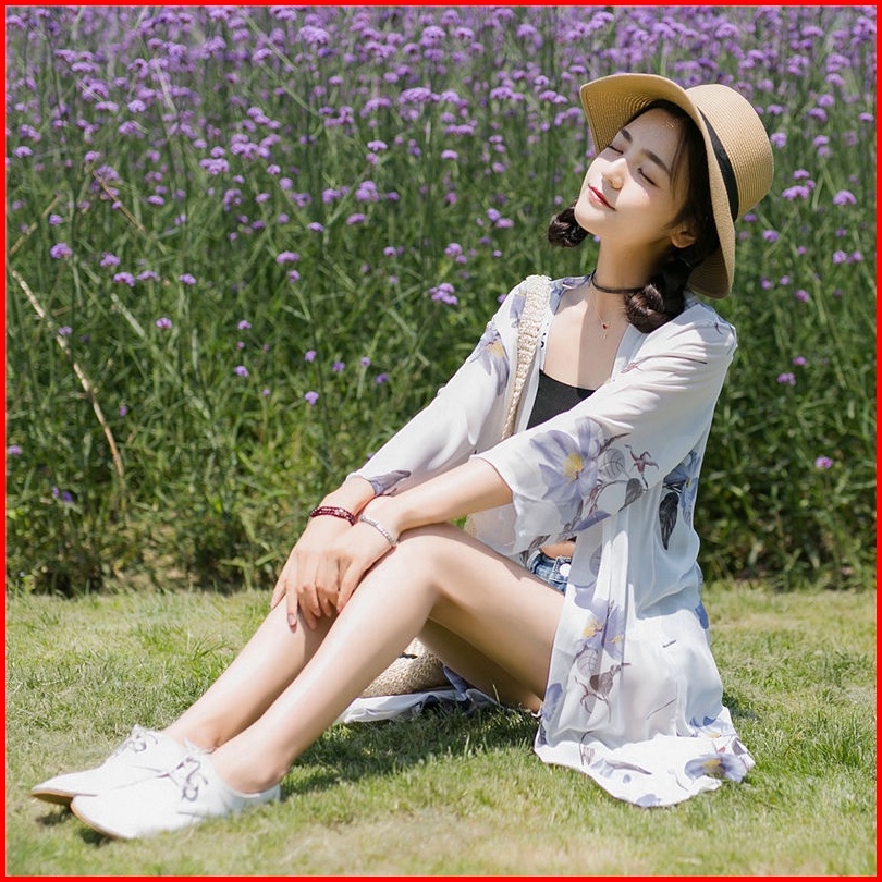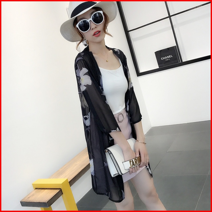 Sweaters Musim Semi Dan Musim Panas Baru Lengan Tiga Perempat Longgar Pencetakan Mantel Tipis Mid-length Beach Chiffon S