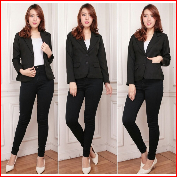 Jas Blazer Wanita Jas Kerja Kantor Cewe Polos Dewasa Blazer Kerja Kantor Lengan Panjang Wanita