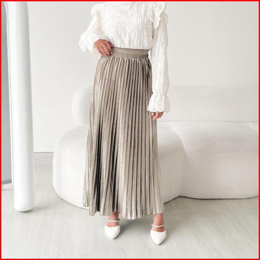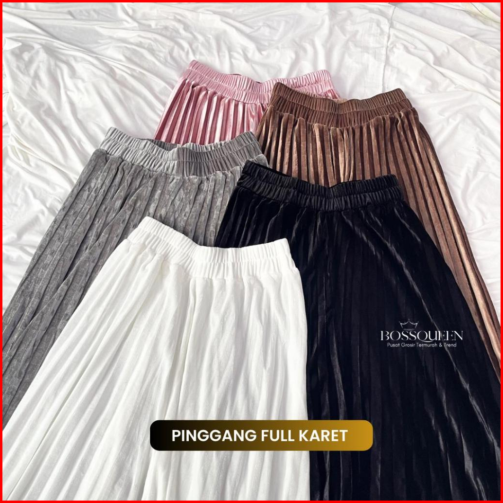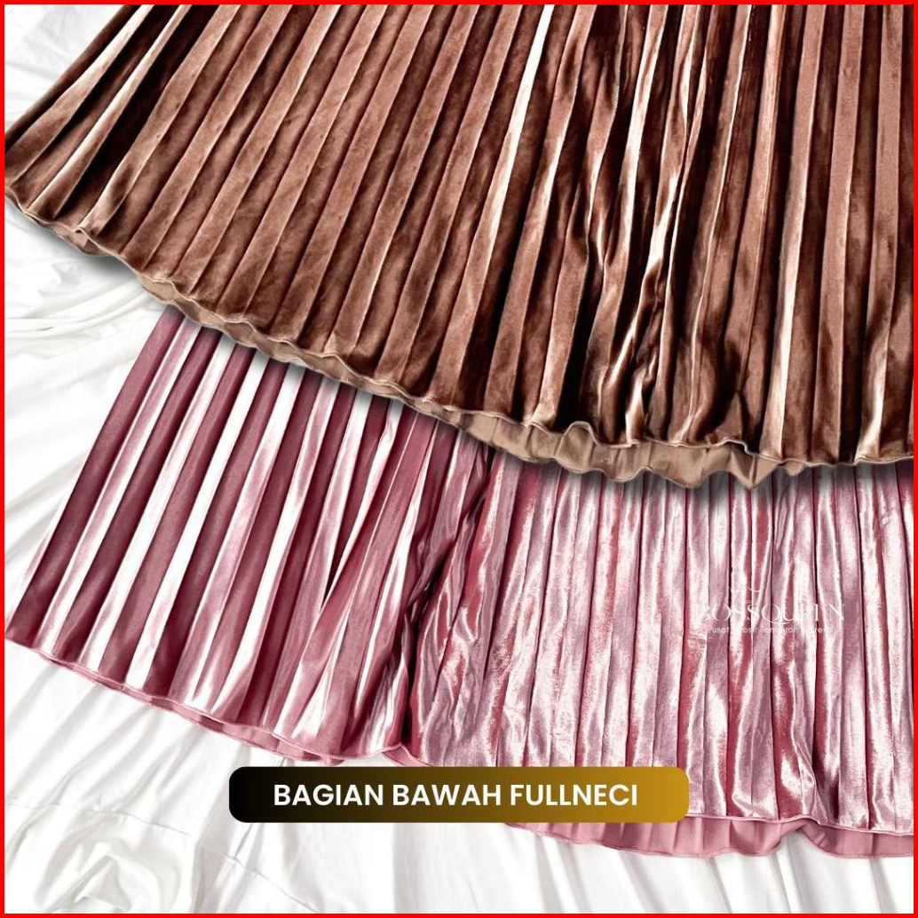 Rok Plisket Bludru Panjang Dewasa Velvet Premium Rok Plisket Bludru Velvet Panjang Mayung Premium Asli Bludru - Hitam