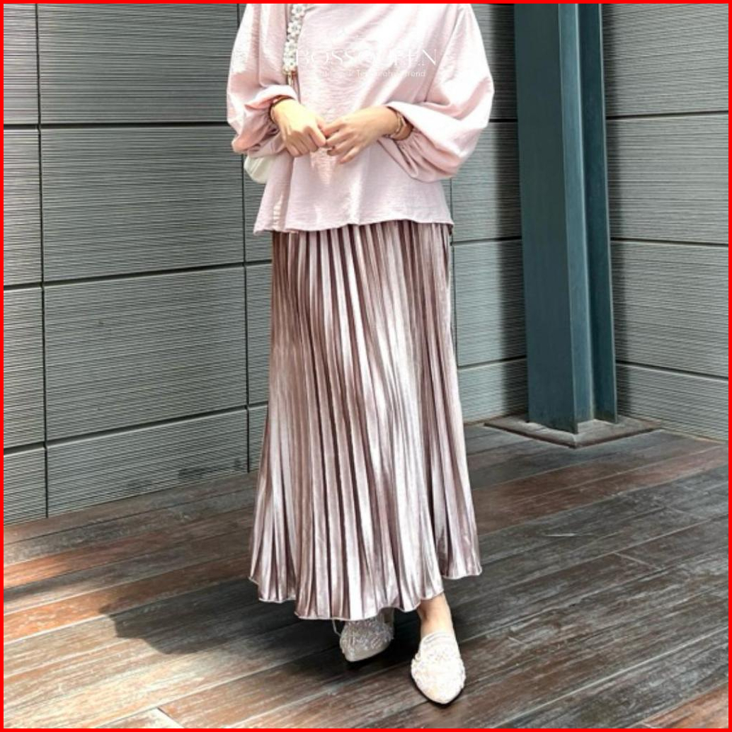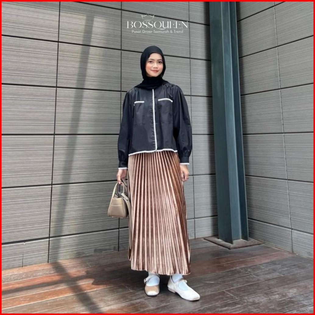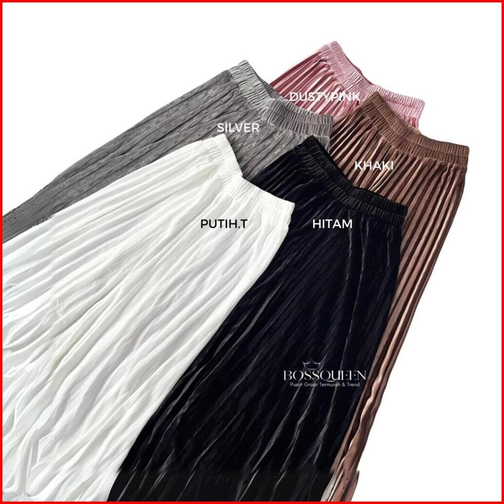 Rok Plisket Bludru Panjang Dewasa Velvet Premium Rok Plisket Bludru Velvet Panjang Mayung Premium Asli Bludru - Hitam