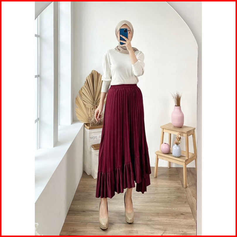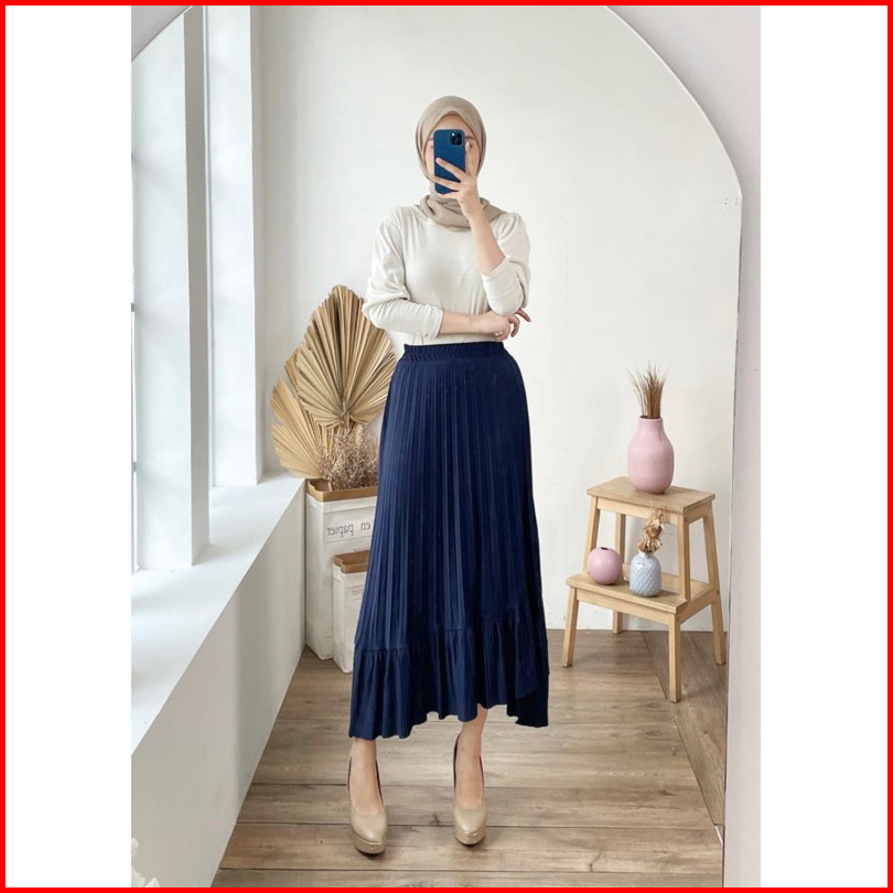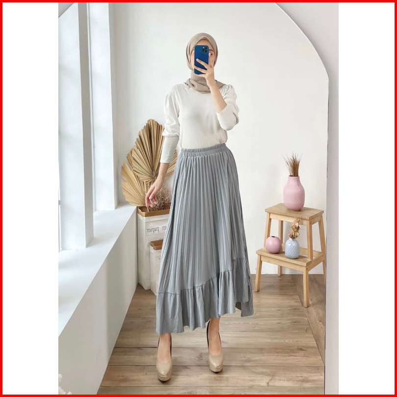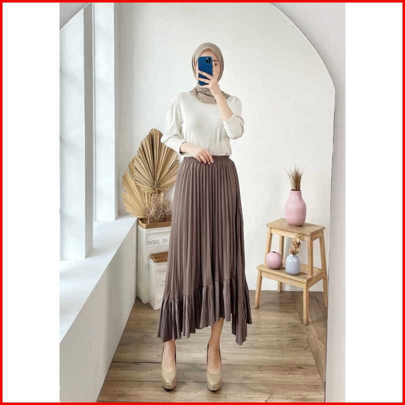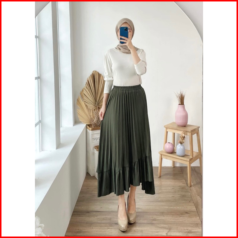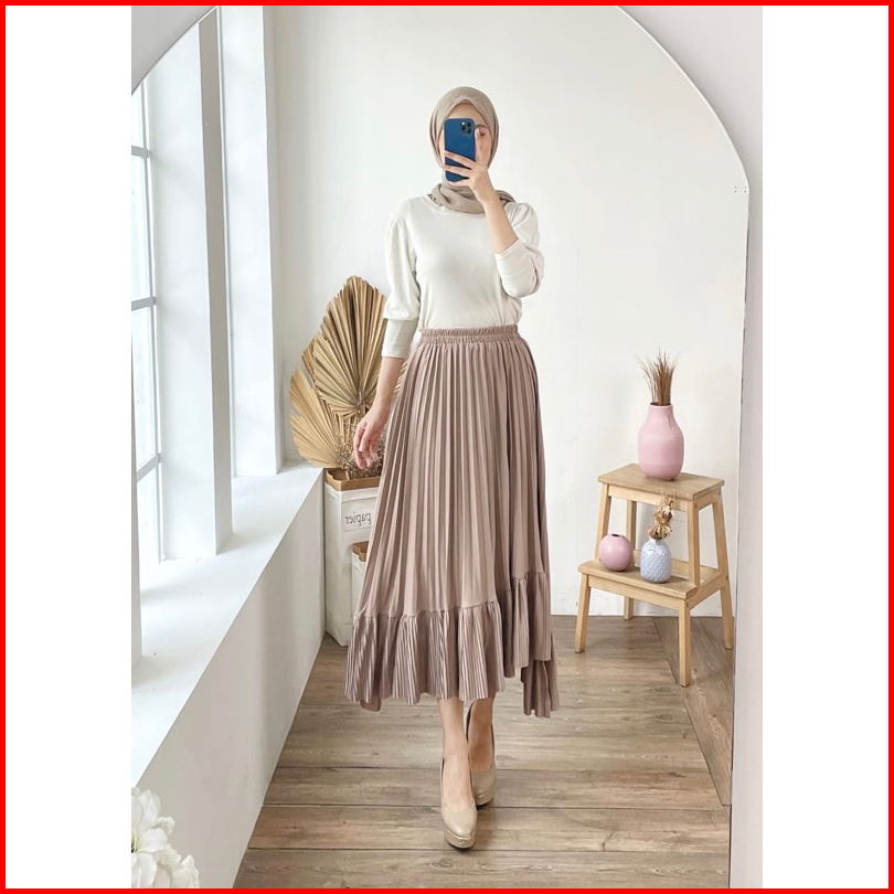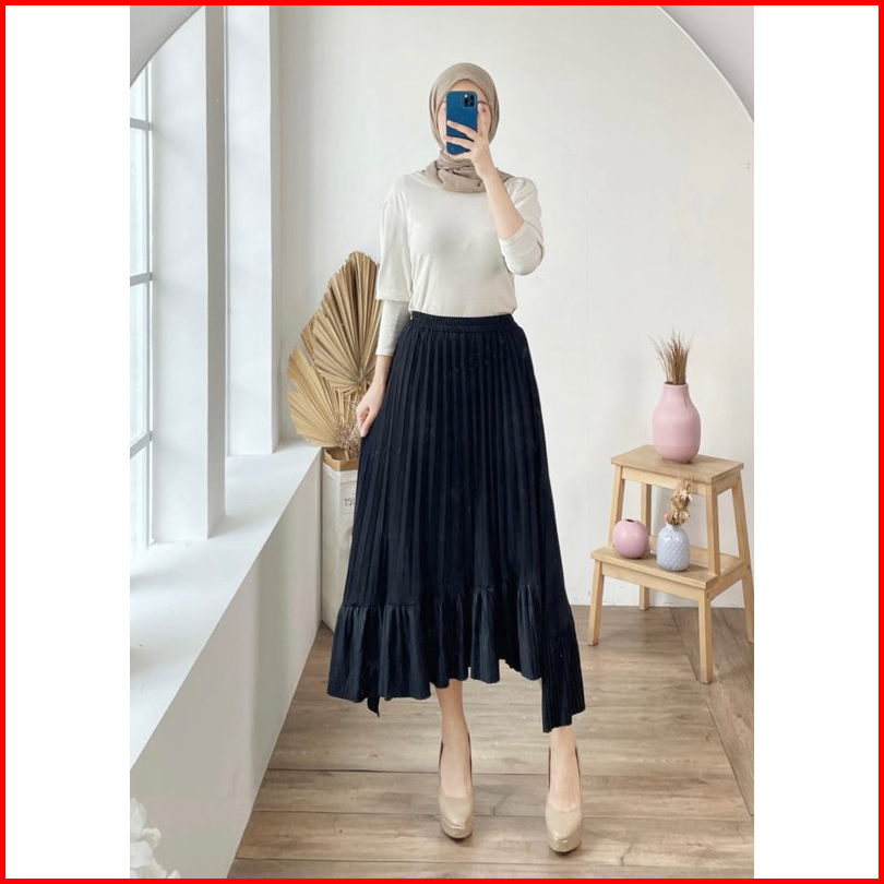 Sale Rok Plisket Asimetris - Mira Bahan Hyget Lidi Prisket Polos Pgmta Grosir Terlaris Murah Real Pic Foto Asli Original