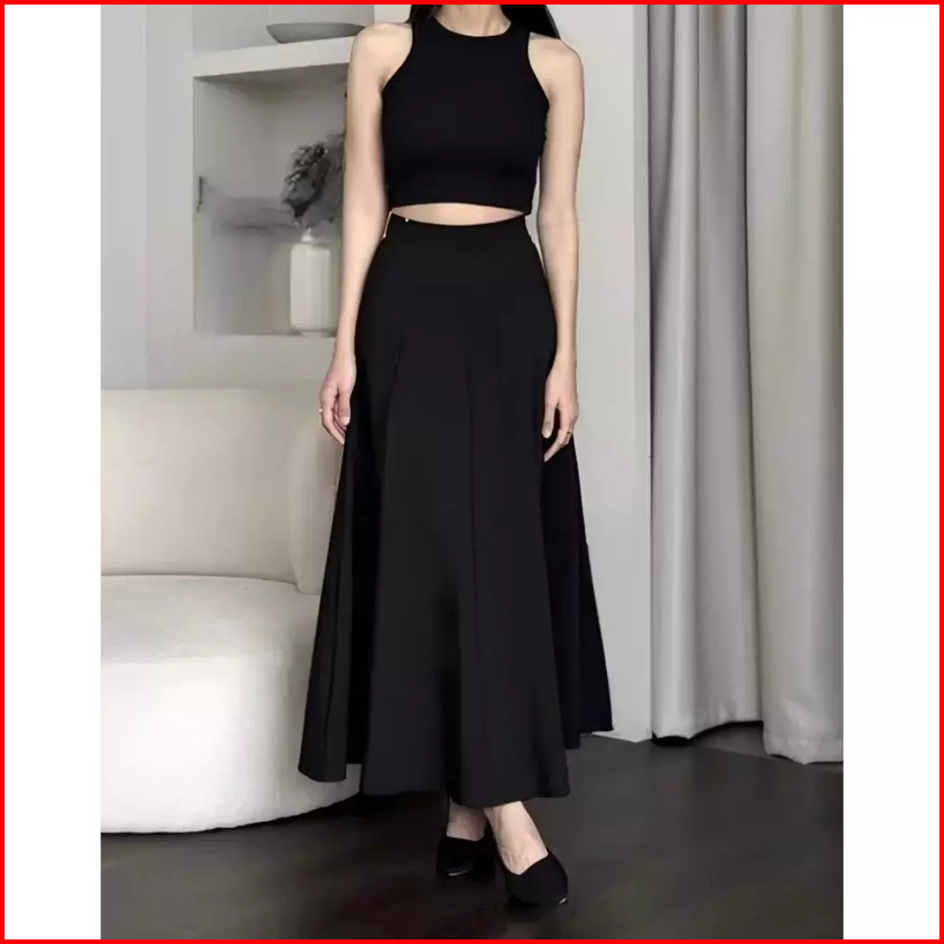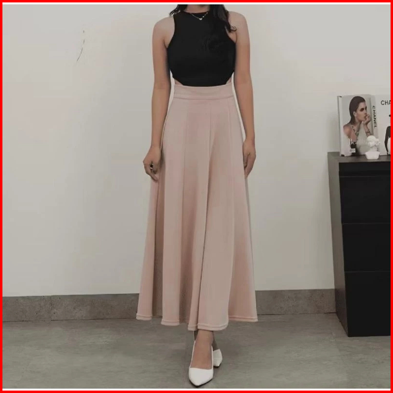 Audy Skirt - Rok Korean Wanita Loose Maxi Skirt Scuba Anti Kusut Polyster - Rok Flare Scuba - Rok Basic Scuba Premium