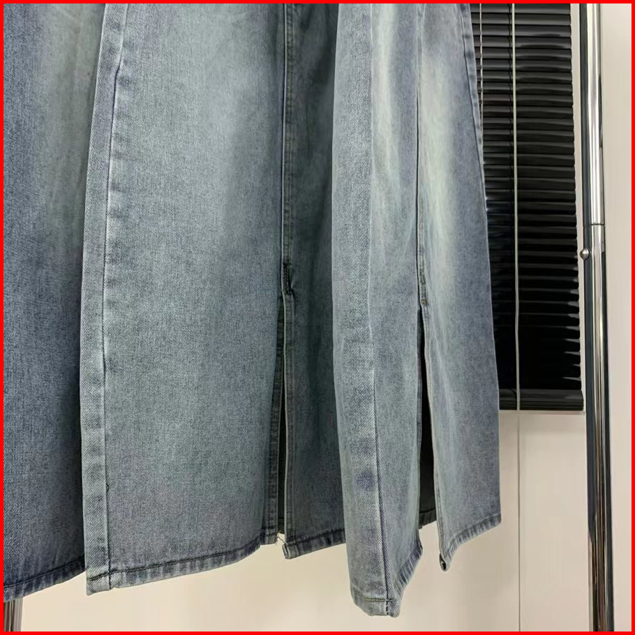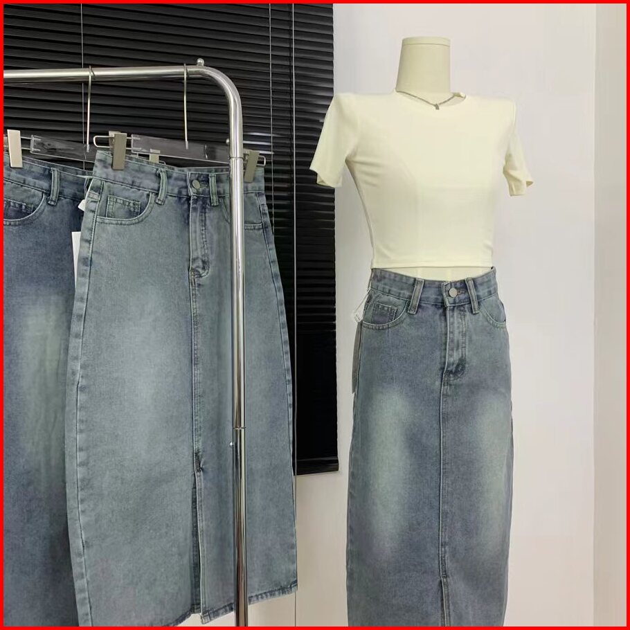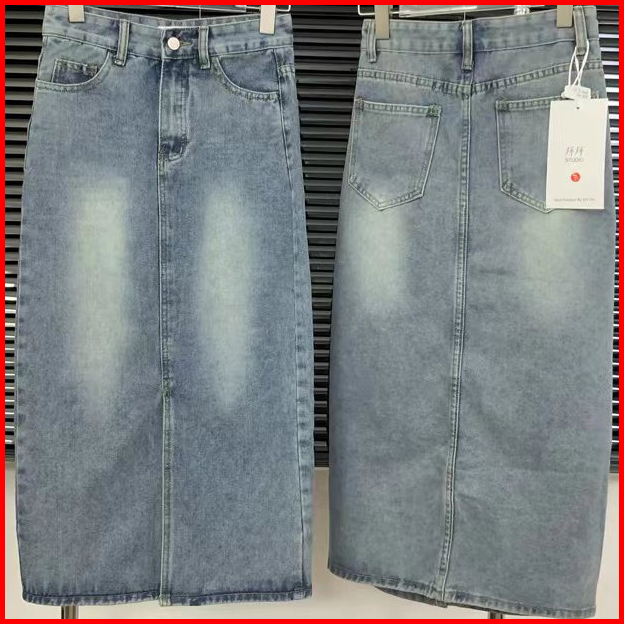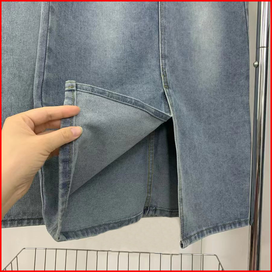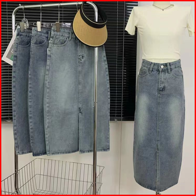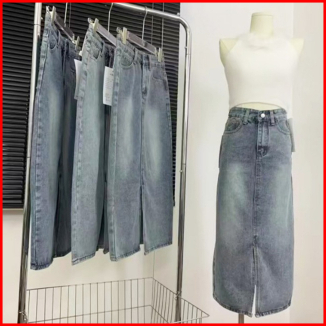 Boll.idbigsize Jumbo Rok Span Korean Style Rok Jeans Panjang Rok Jeans Jumbo Wanita S-5xl Retro Biru Rok Belah Tengah Hi