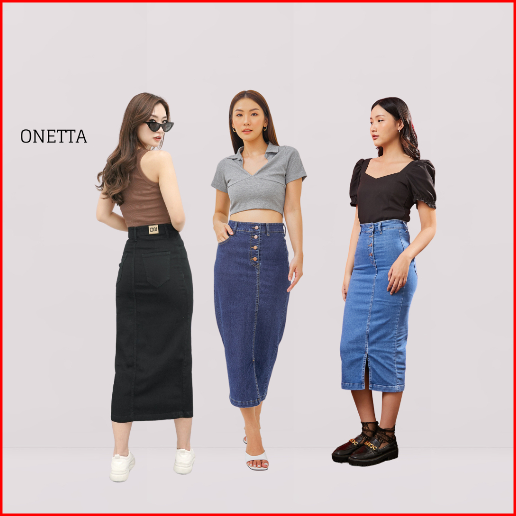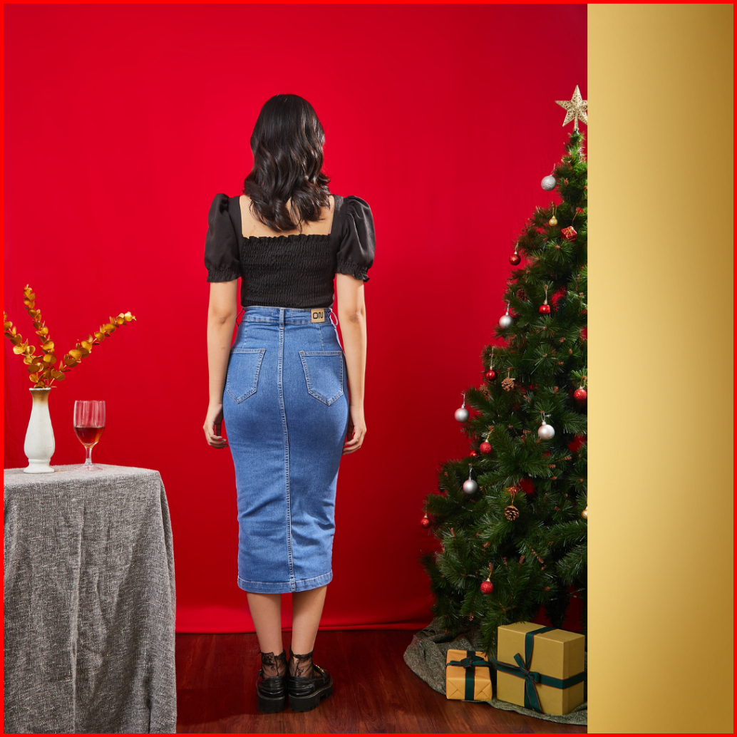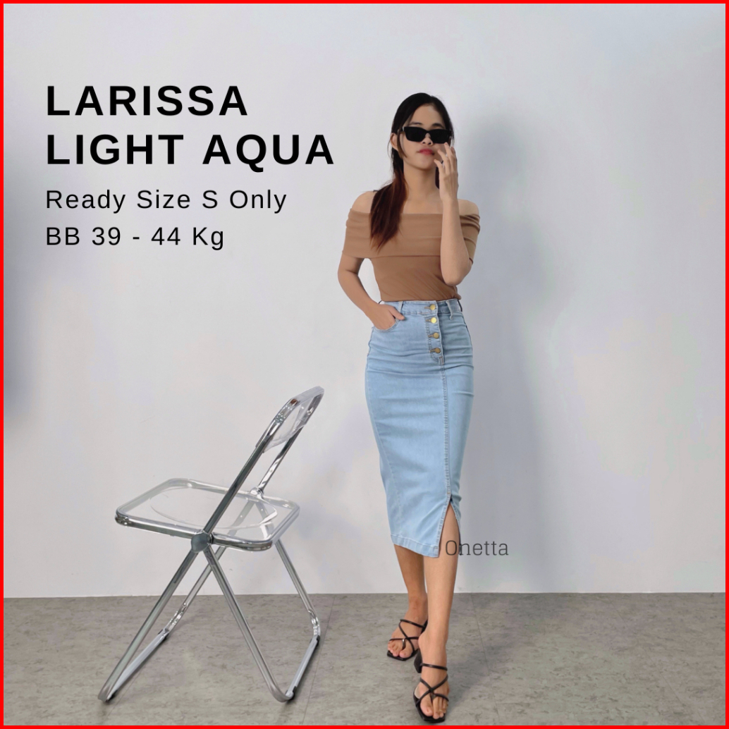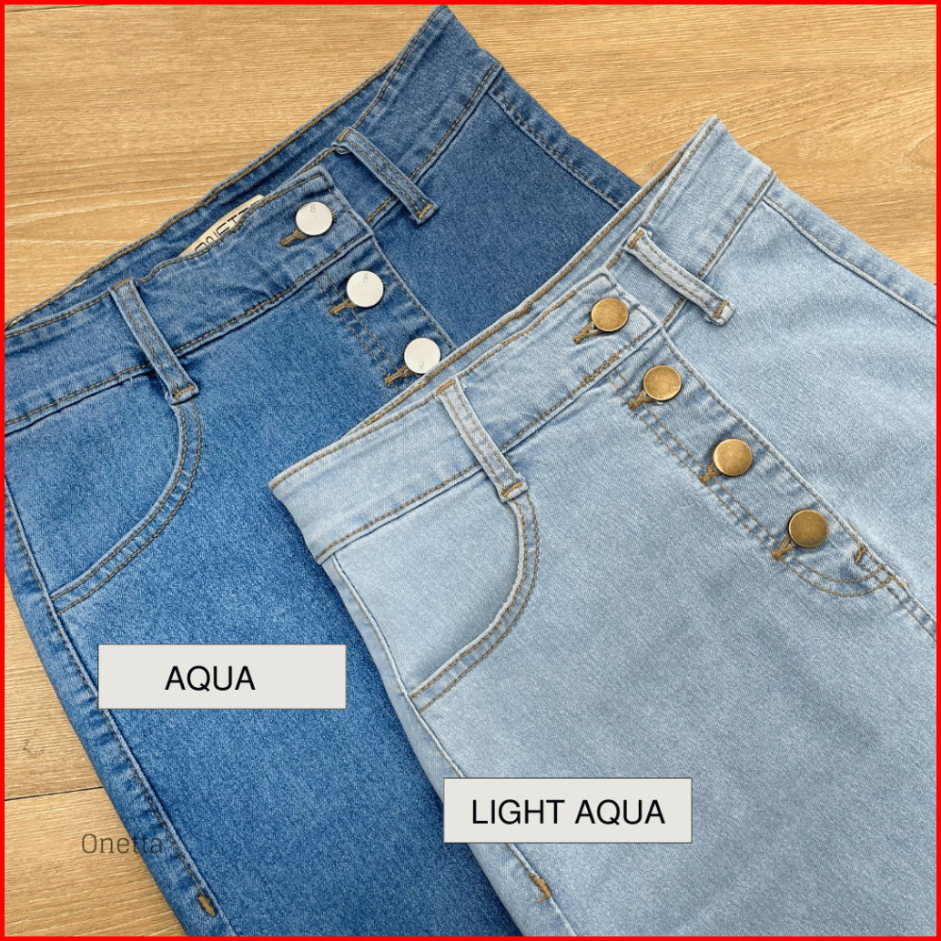 Onetta - Rok Span Jeans Belah Depan Midi Skirt Larissa Aqua