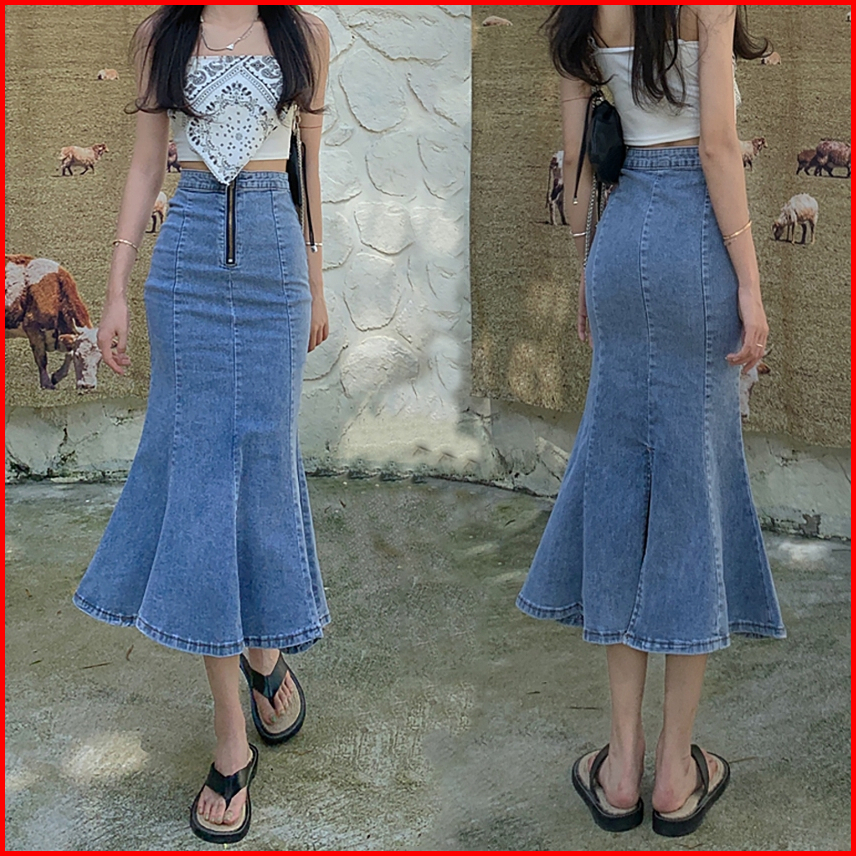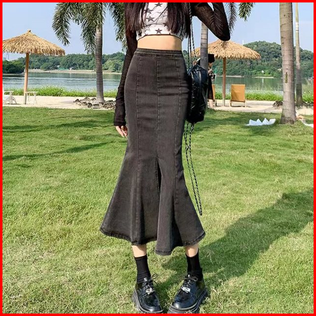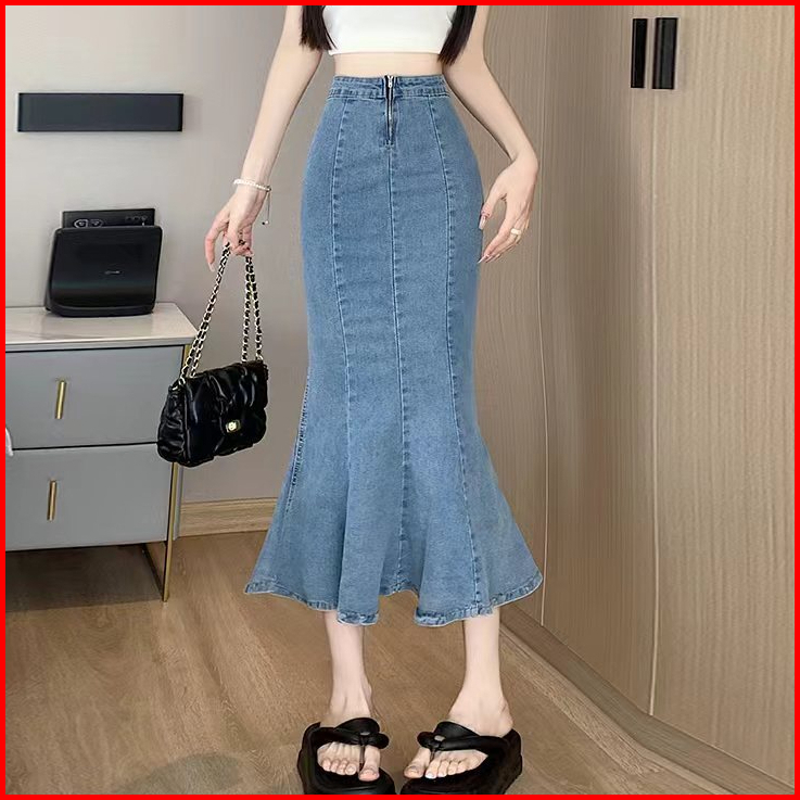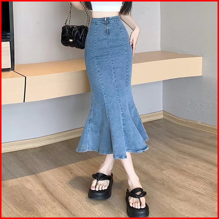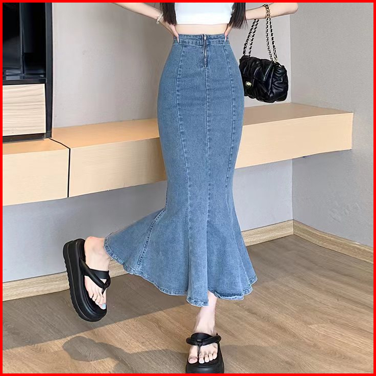 Boll.idbigsize Jumbo Rok Jeans Wanita Rok Jeans Panjang Rok Korean Style Rok Wanita Highwaist Fishtail Rok Jeans Premium