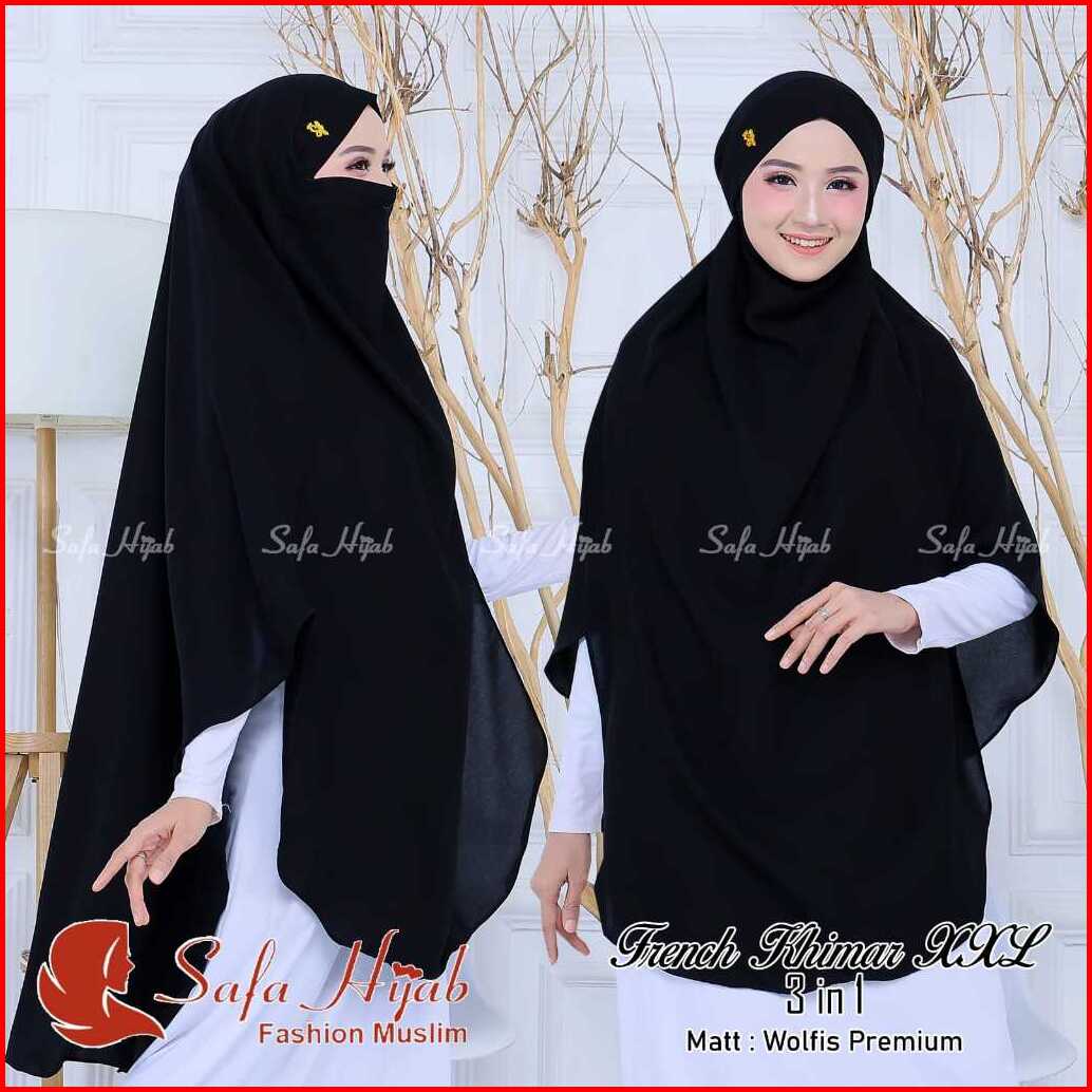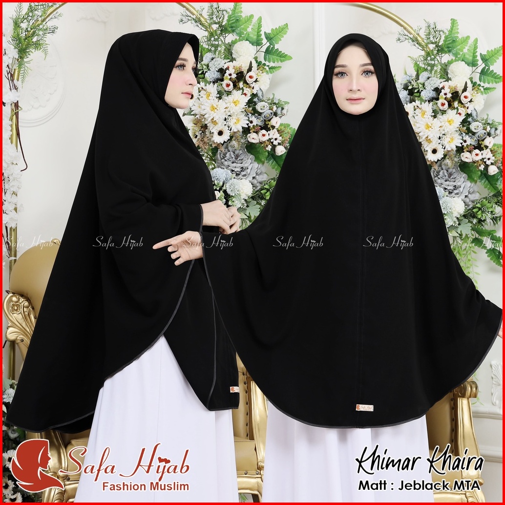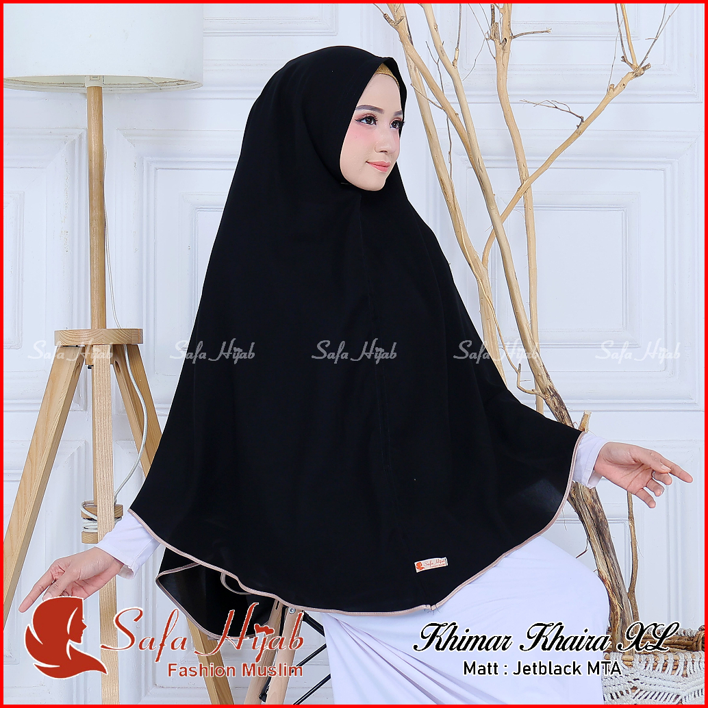 Khimar Syari Jetblack Mta Khimar Khaira List Pita Warna Polos Super Cantik Pet Dan Non Pet Jilbab Jumbo Hitam Pekat Katu