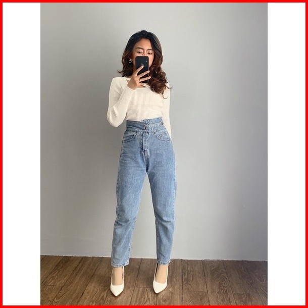 Luxe.dlabel -d46 Jeans Celana Jeans Highwaist Wanita Celana Panjang Jeans Highwaist Wanita Boyfriend Jeans Baggy Jeans S