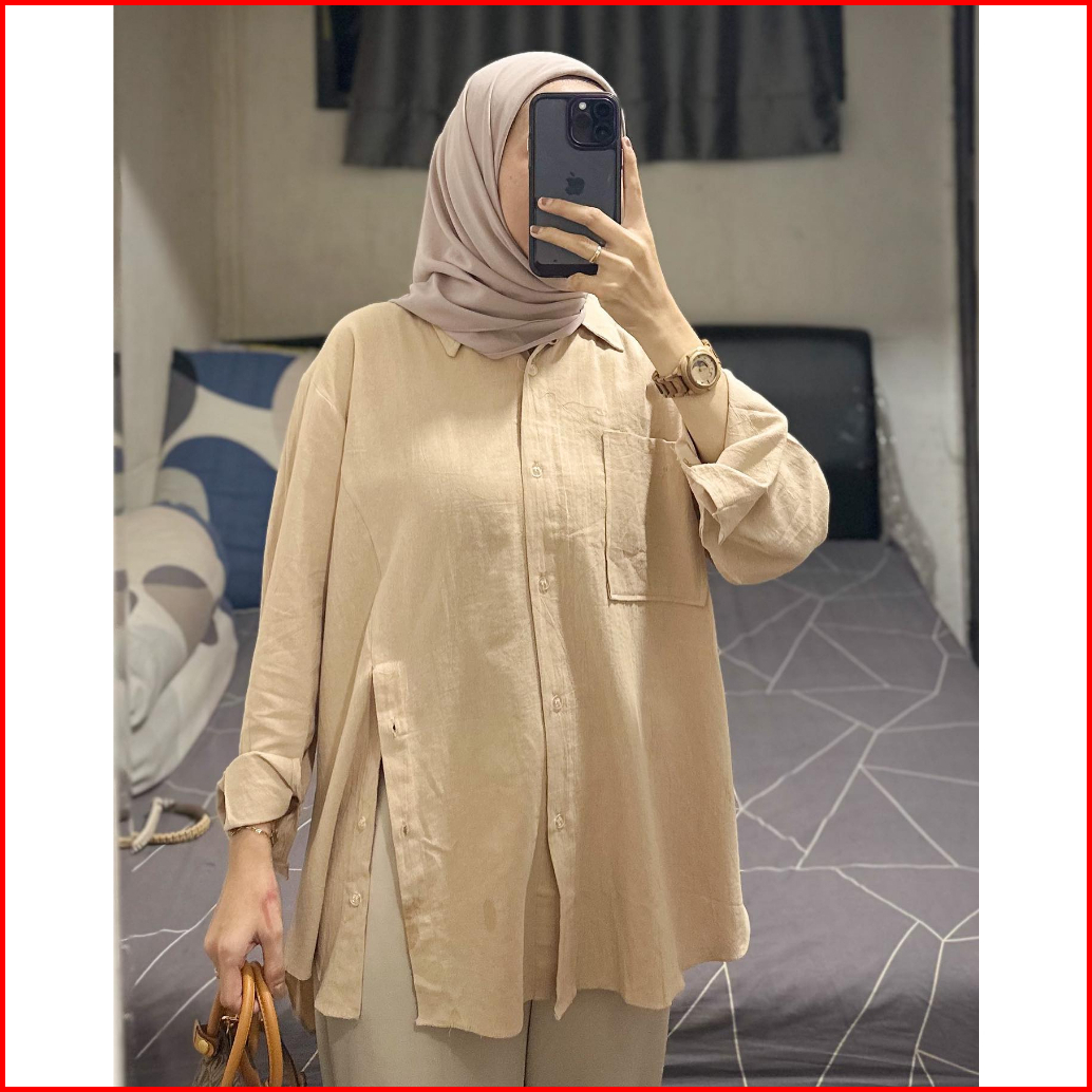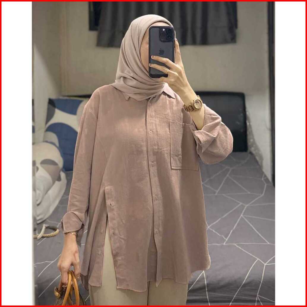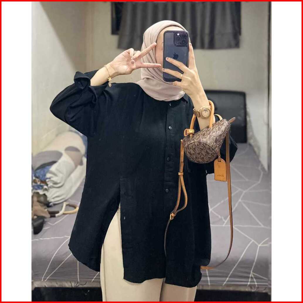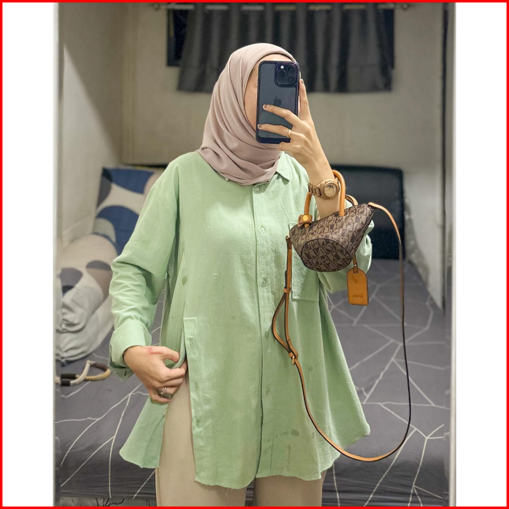 Orimoza Kemeja Polos Crinkle Wanita Kancing Samping Zaliah