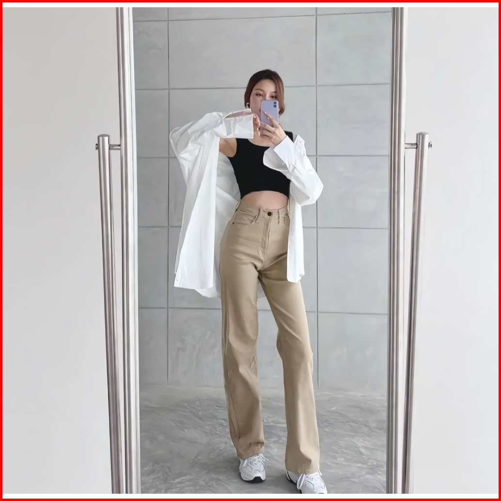 Celana Jeans Wanita Highwaist Kulot Loose Panjang Polos
