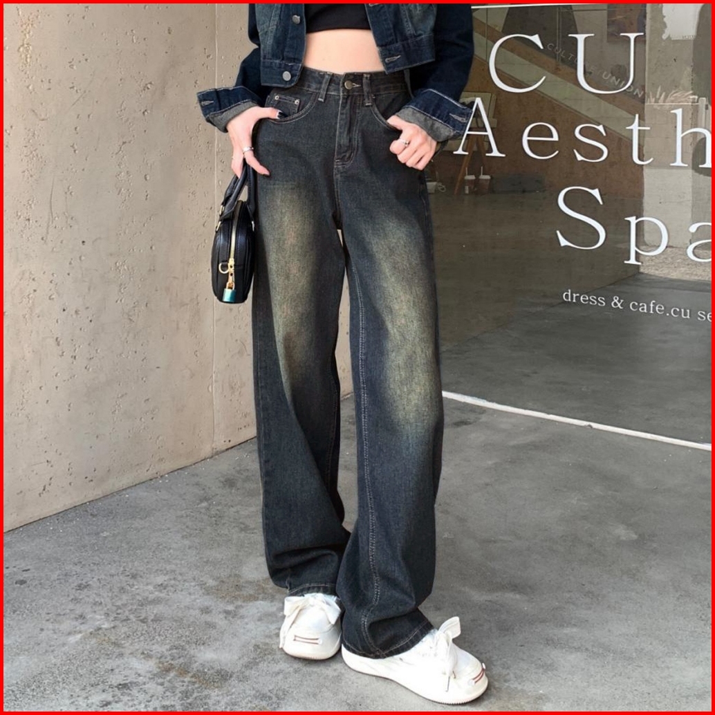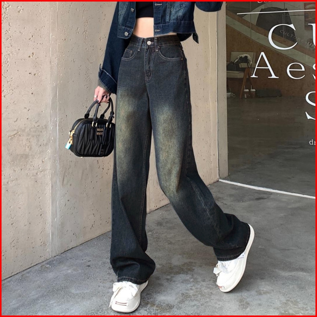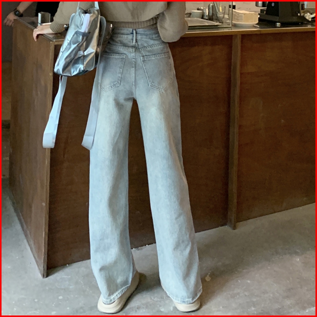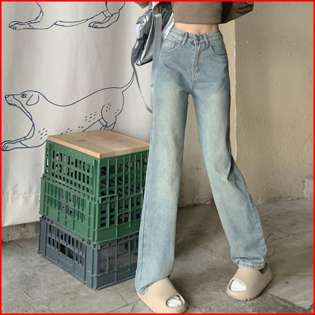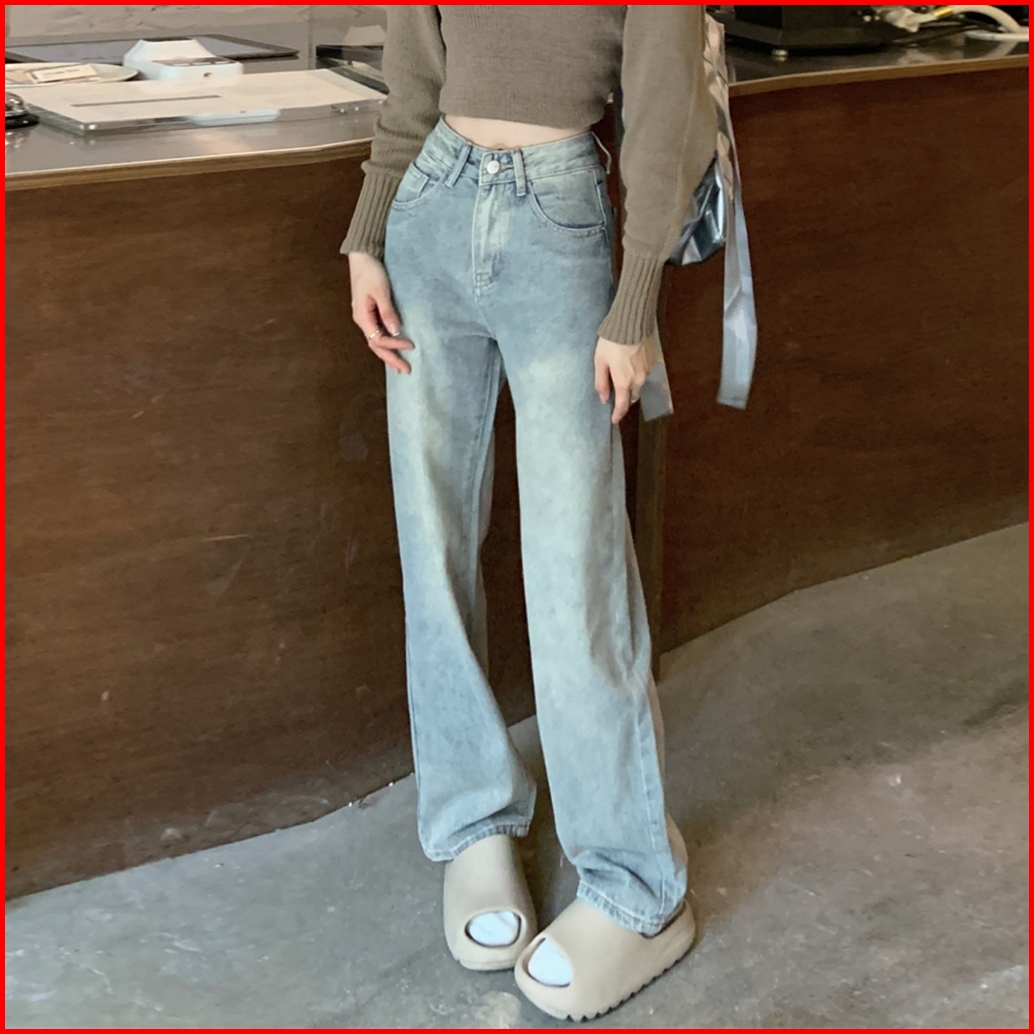 Retro Straight Celana Jeans Terbaru Wanita Loose Thin High Waisted Wide Leg Denim Pants