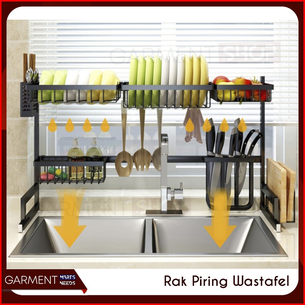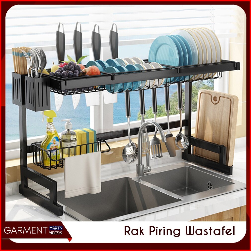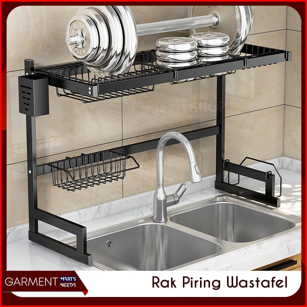 Rak Piring Wastafel 2 Susun Hitam Anti Karat Serbaguna