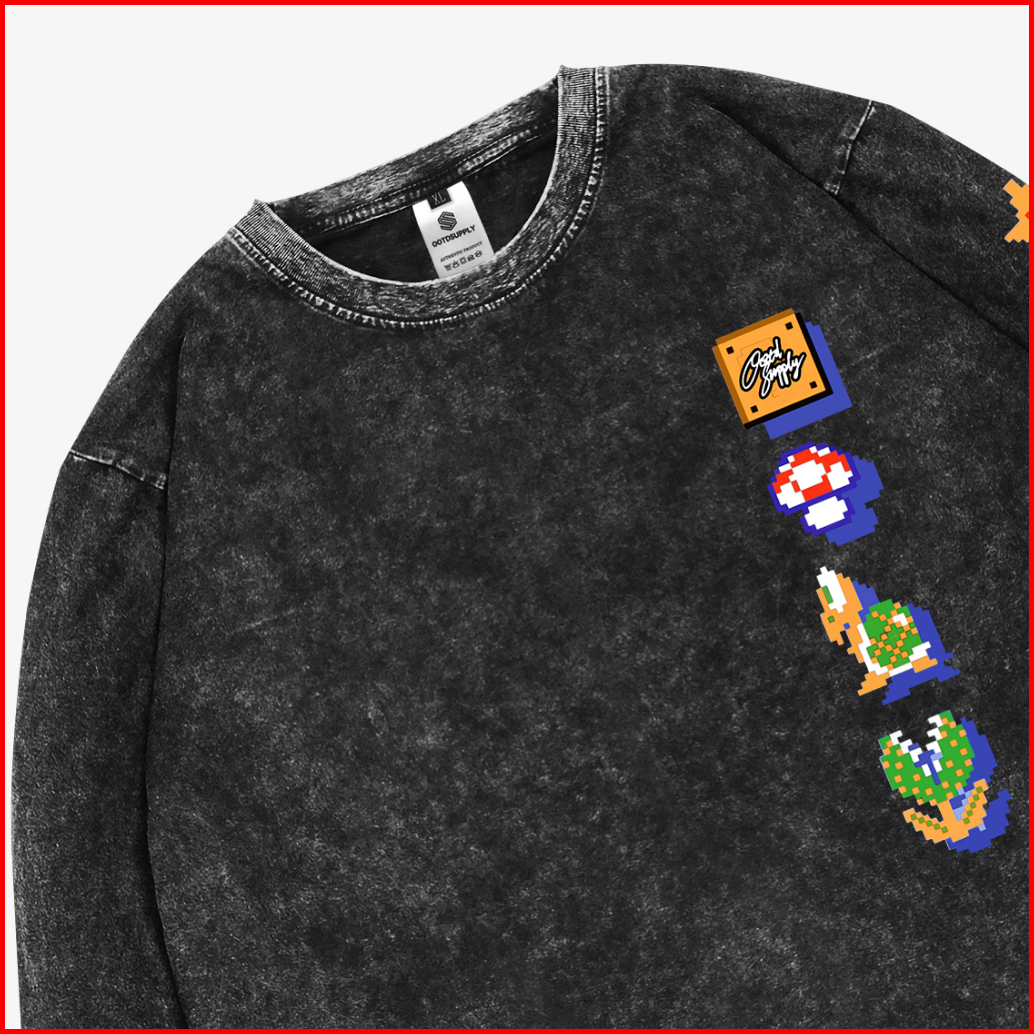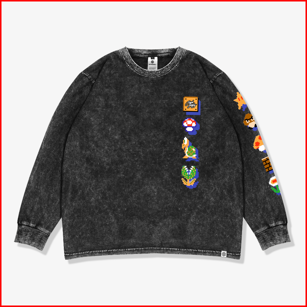 Ootdsupply Longsleeve Yoshi Sandwash L Kaos Lengan Panjang Pria Dan Wanita Lswh003