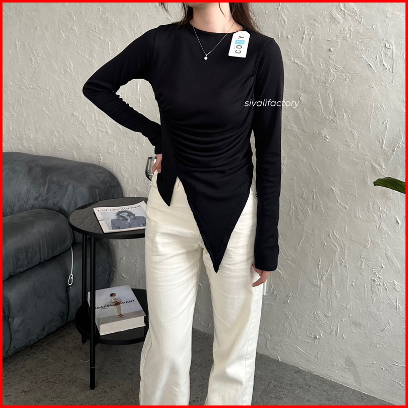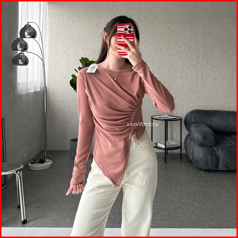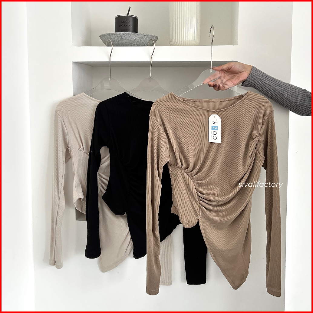 Sivali Zia Knit Top Atasan Knit Wanita - Korean Top - Baju Knit Wanita Lengan Panjang - Long Sleeve
