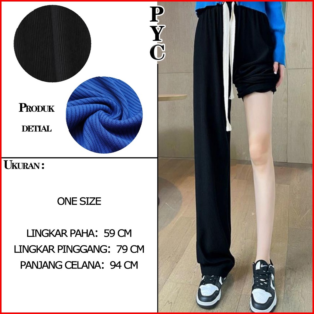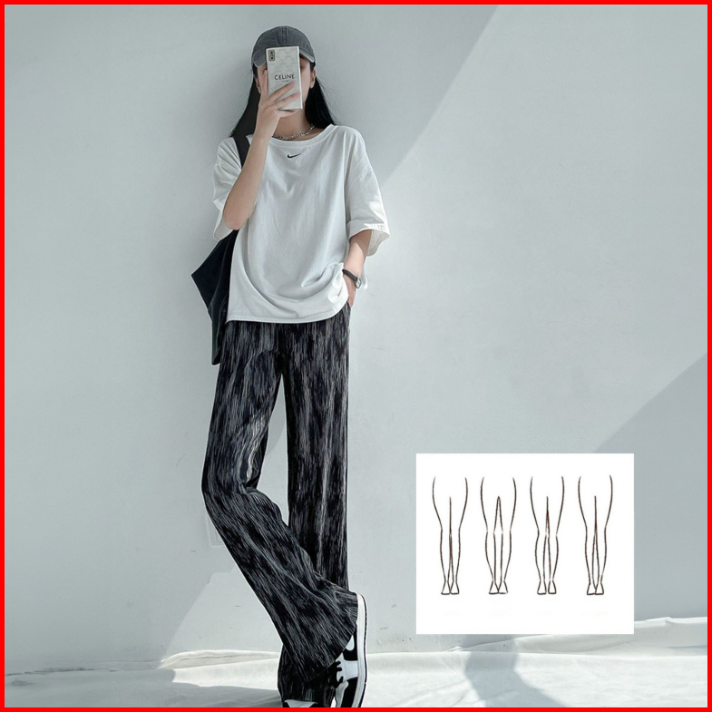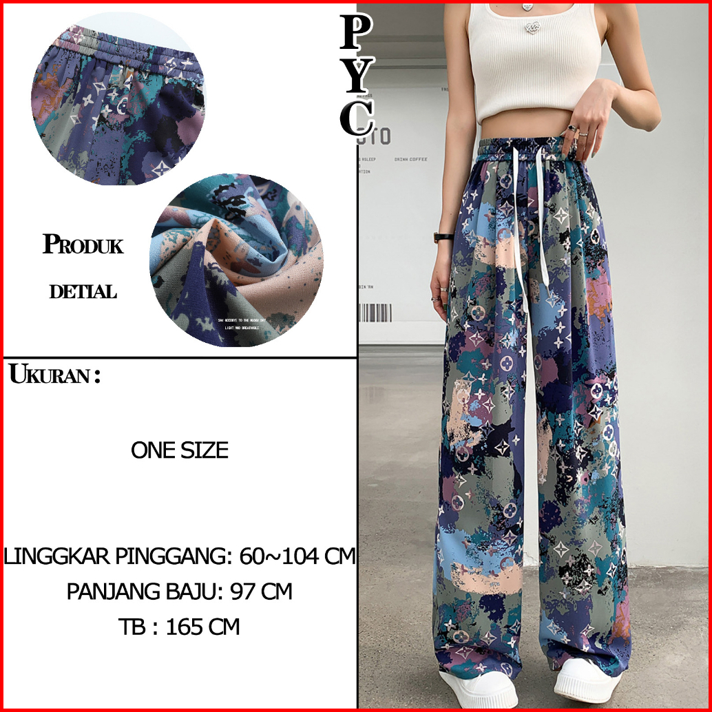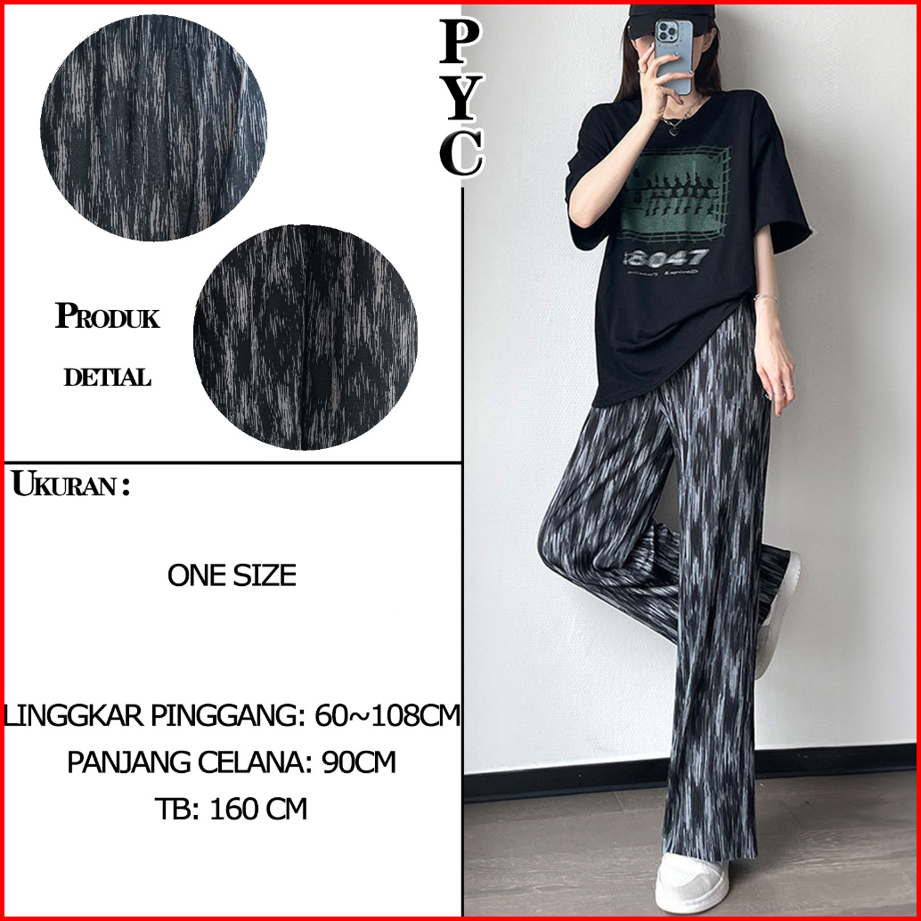 Korean Long Pants Celana Culottes Abstrak Hitam Tinta-