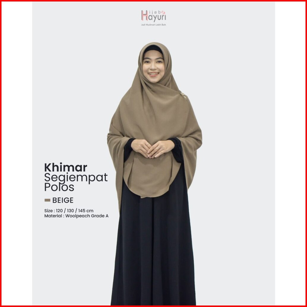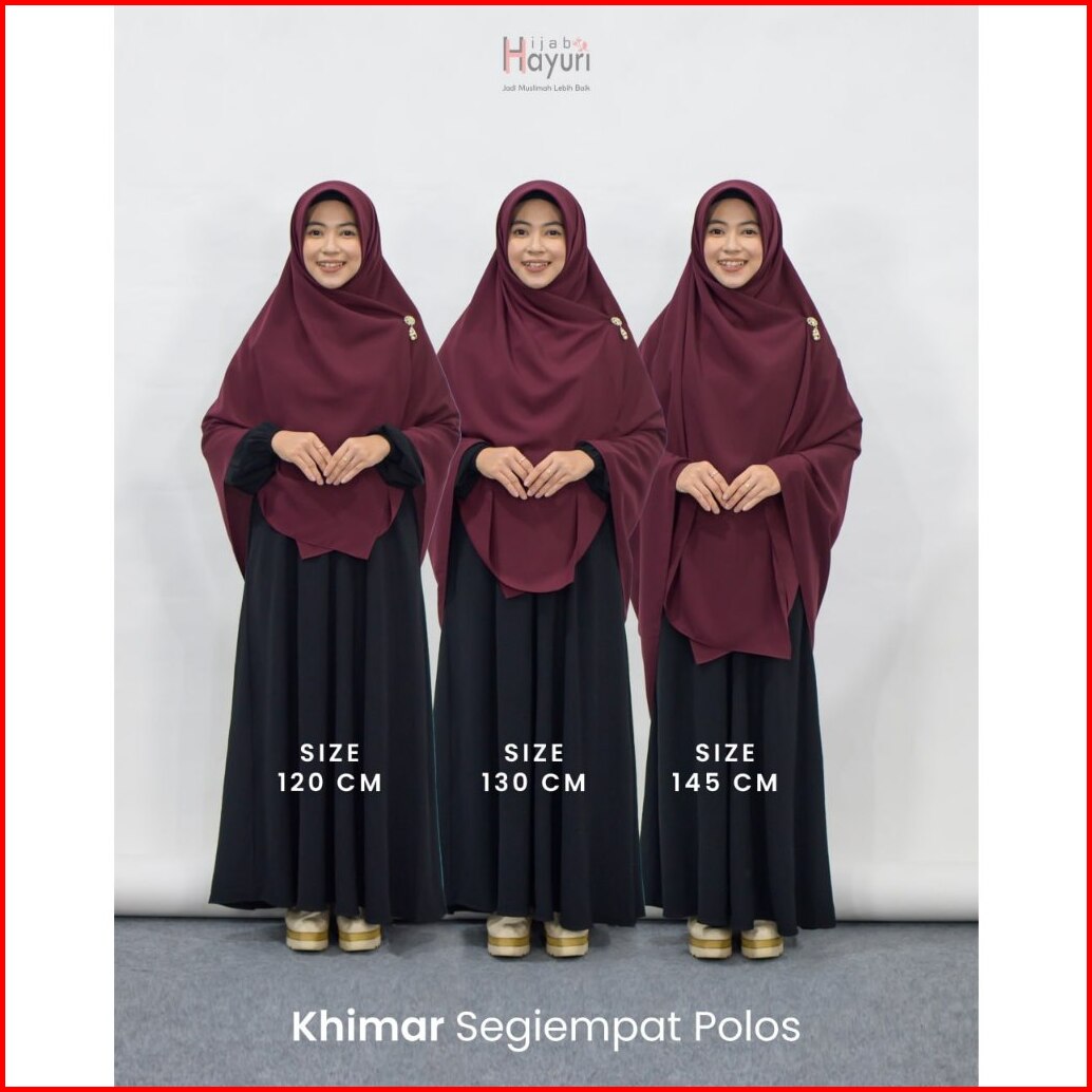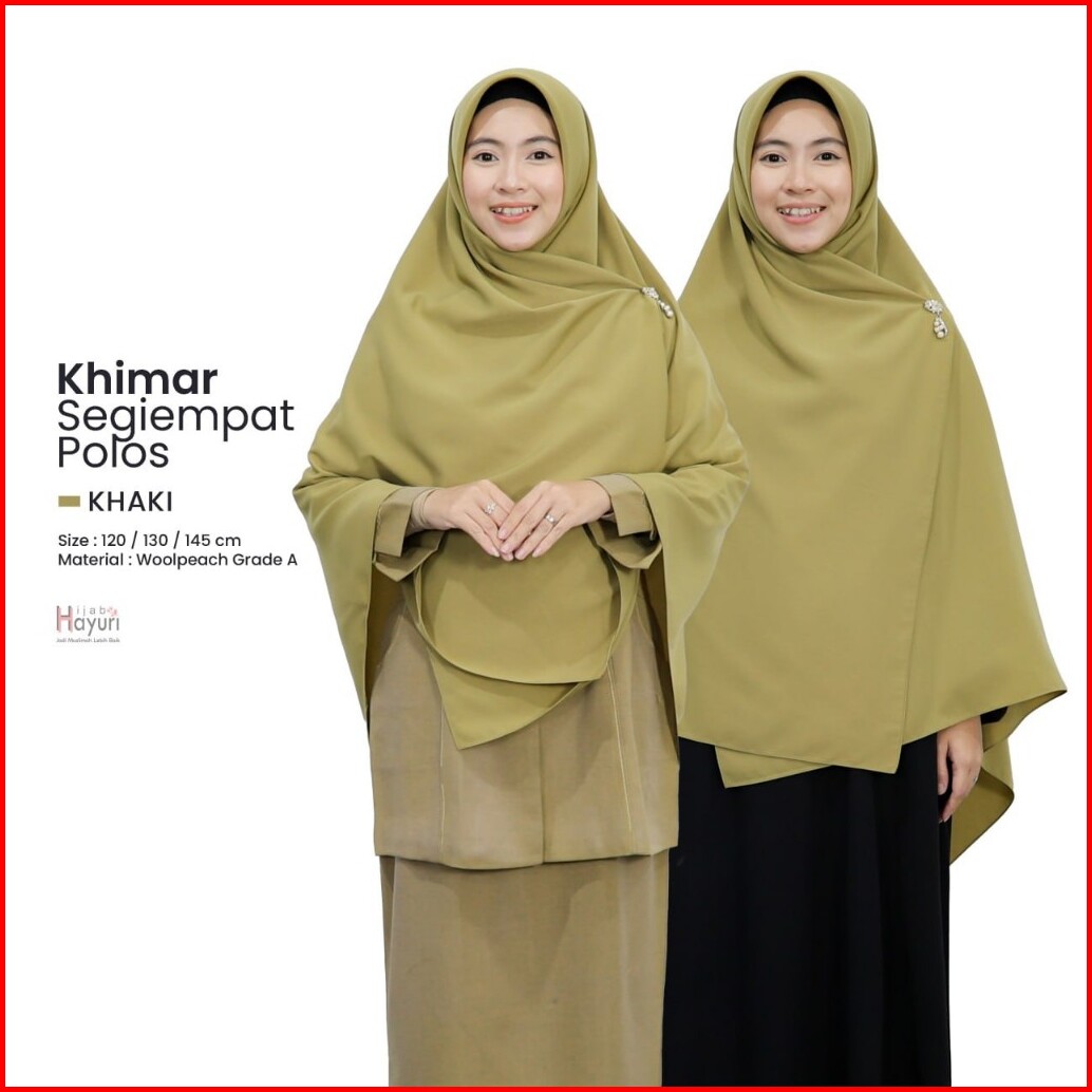 Hijab Hayuri Khimar Segi Empat Polos - Jilbab Segiempat Syar I 120x120 130x130 145x145 Cm - Bahan Woolpeach Grade A