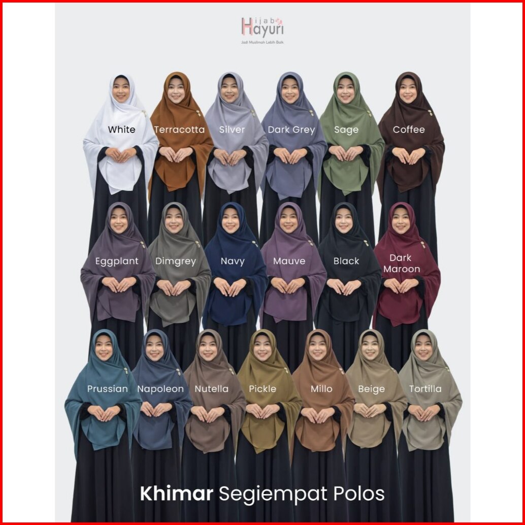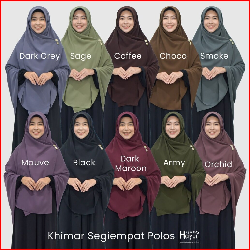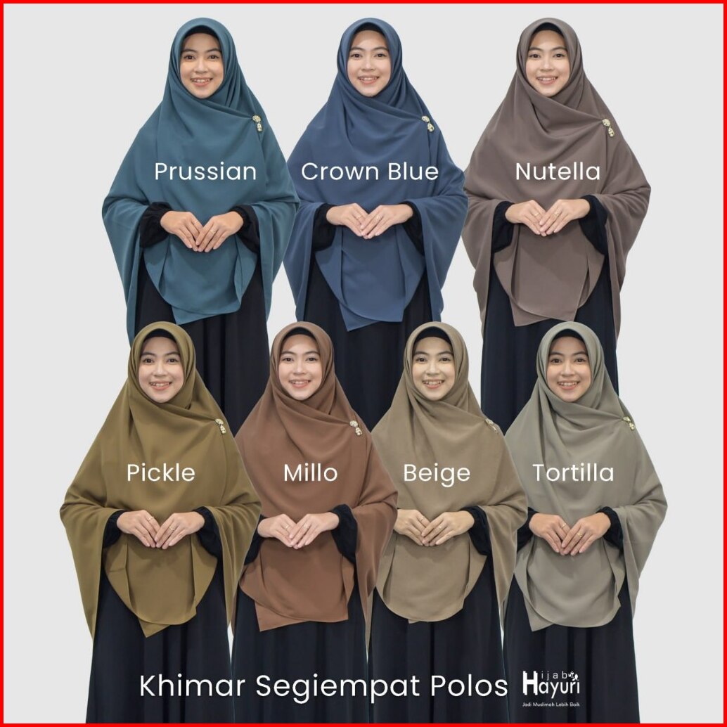 Hijab Hayuri Khimar Segi Empat Polos - Jilbab Segiempat Syar I 120x120 130x130 145x145 Cm - Bahan Woolpeach Grade A