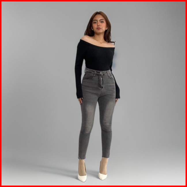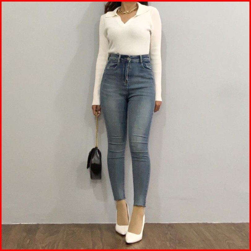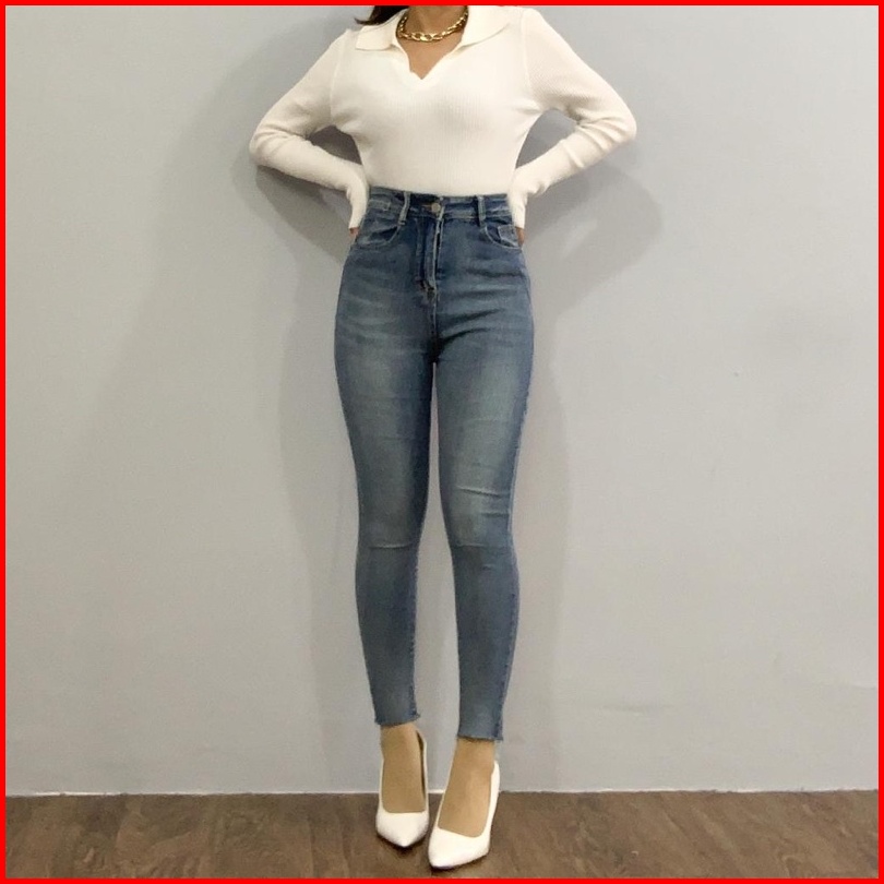 Luxe.dlabel - E11 Jeans Celana Panjang Highwaist Wanita Jeans Premium Jeans Wanita Polos Ripped Jeans High Waist Jeans W