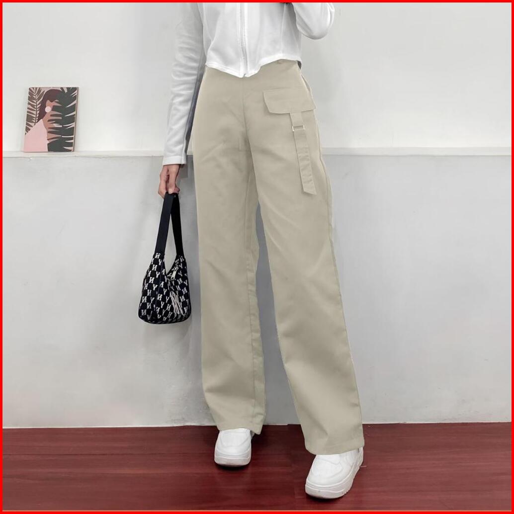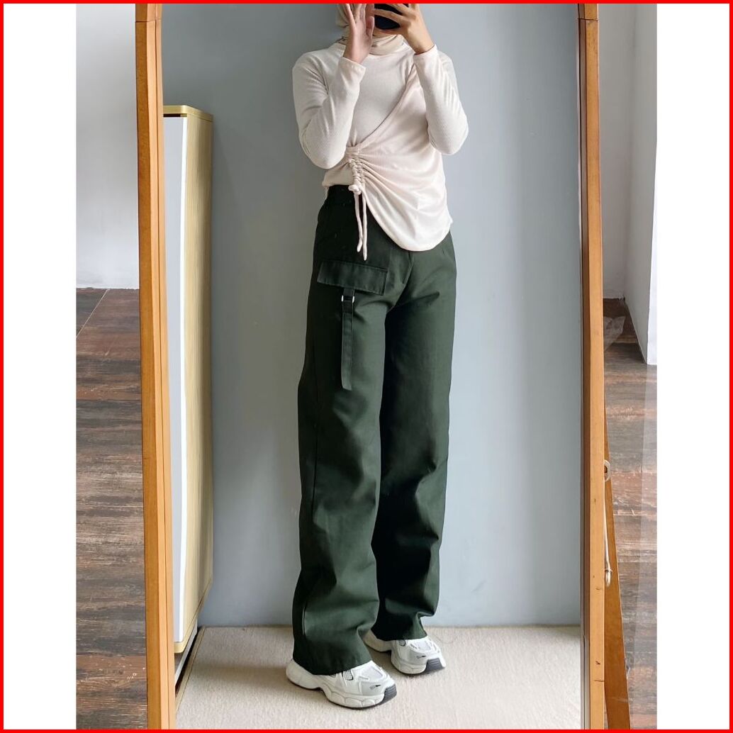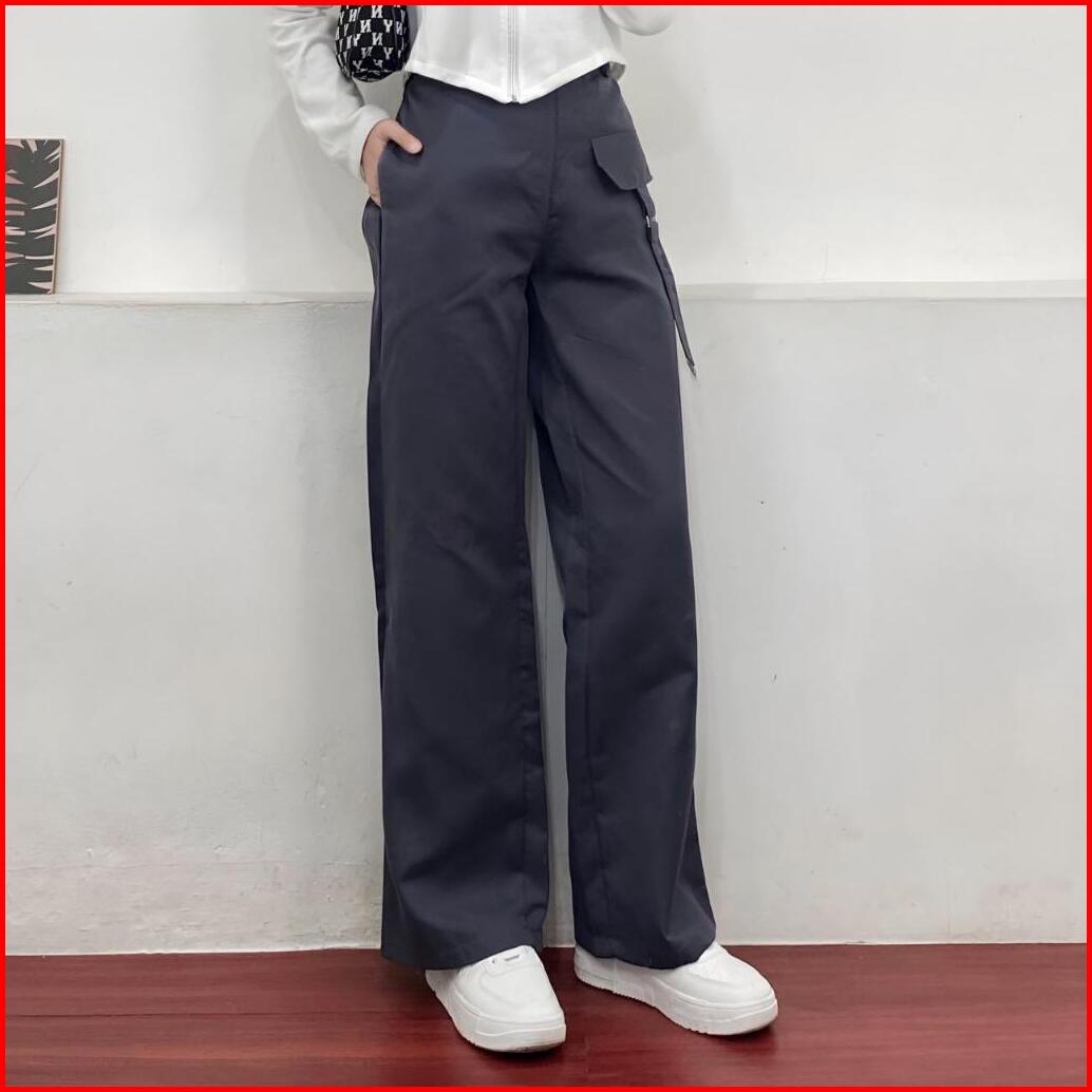 Orimoza Celana Cargo Katun Drill Highwaist Loose Pants Rubby