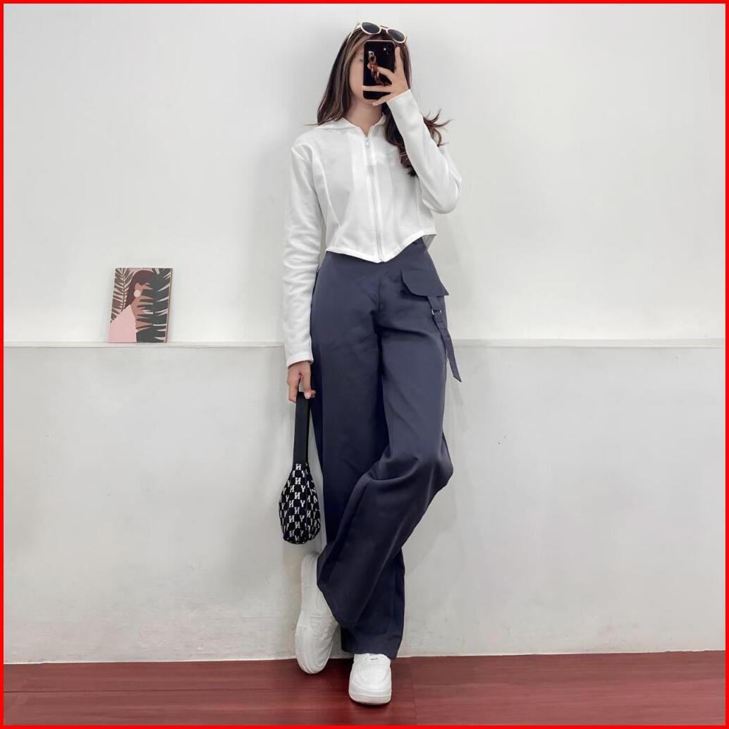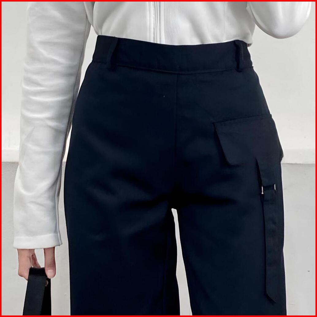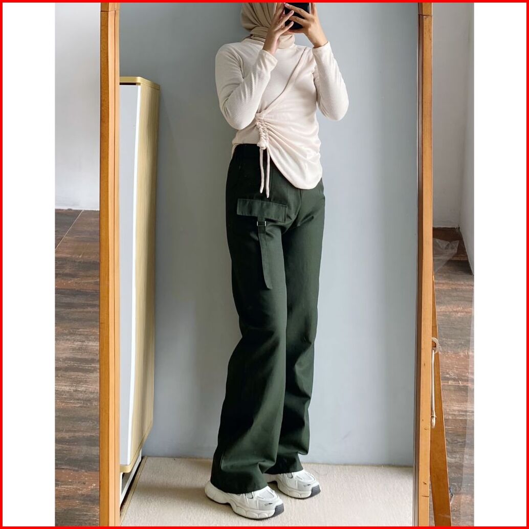 Orimoza Celana Cargo Katun Drill Highwaist Loose Pants Rubby