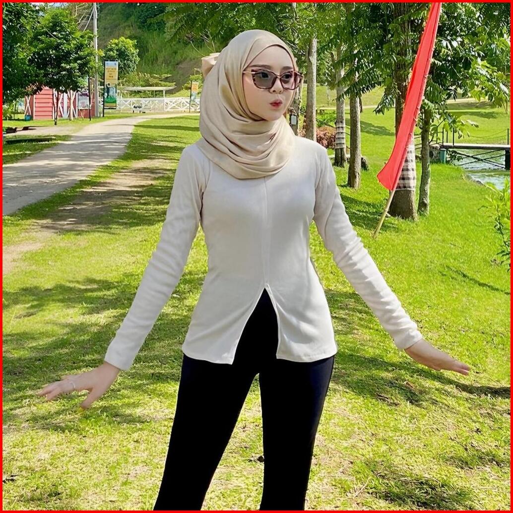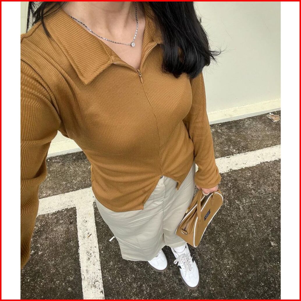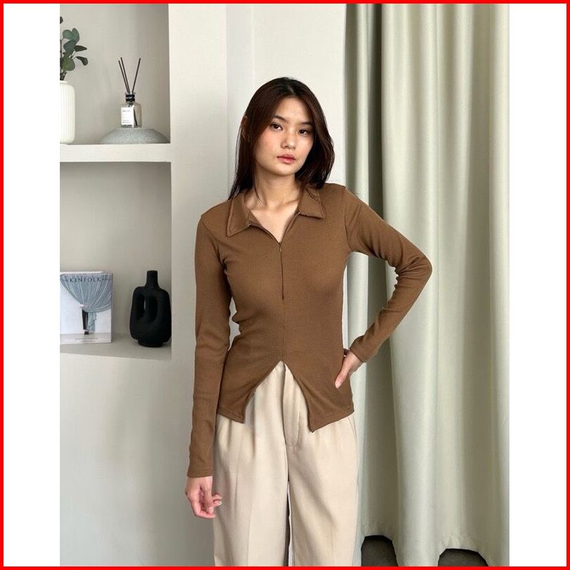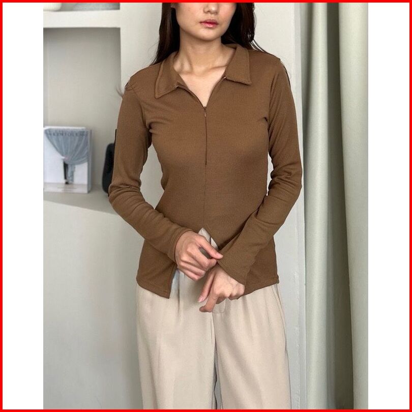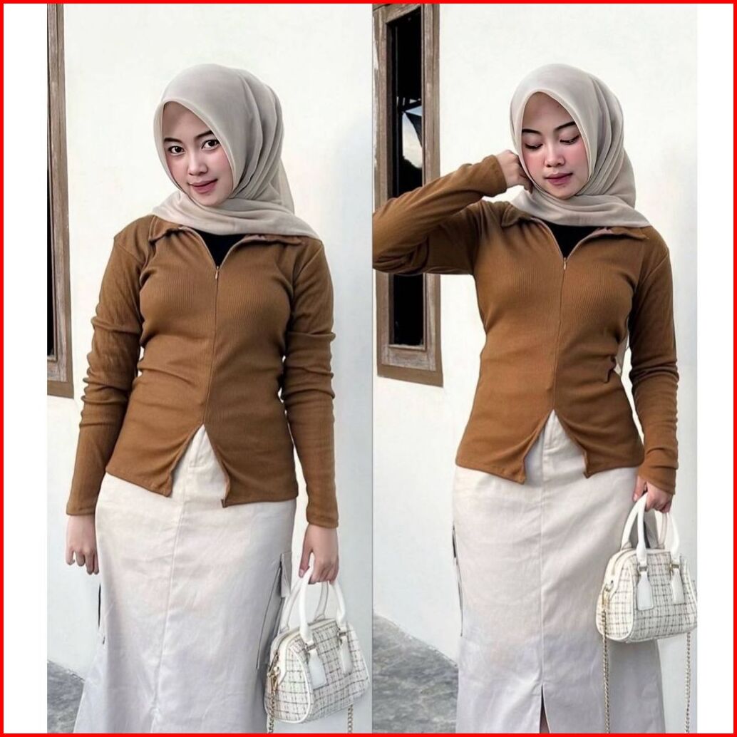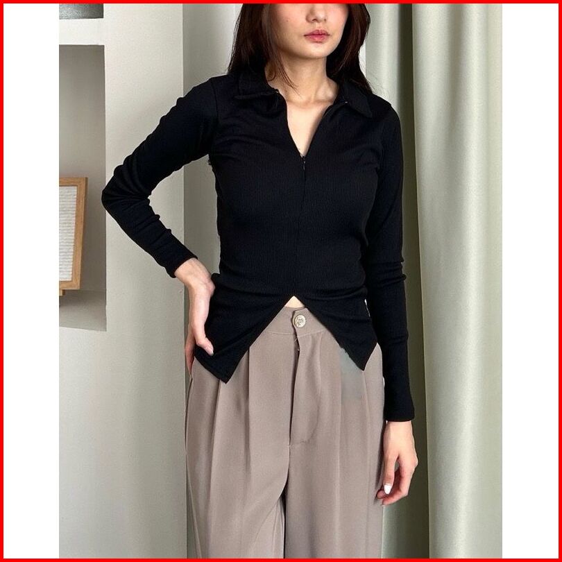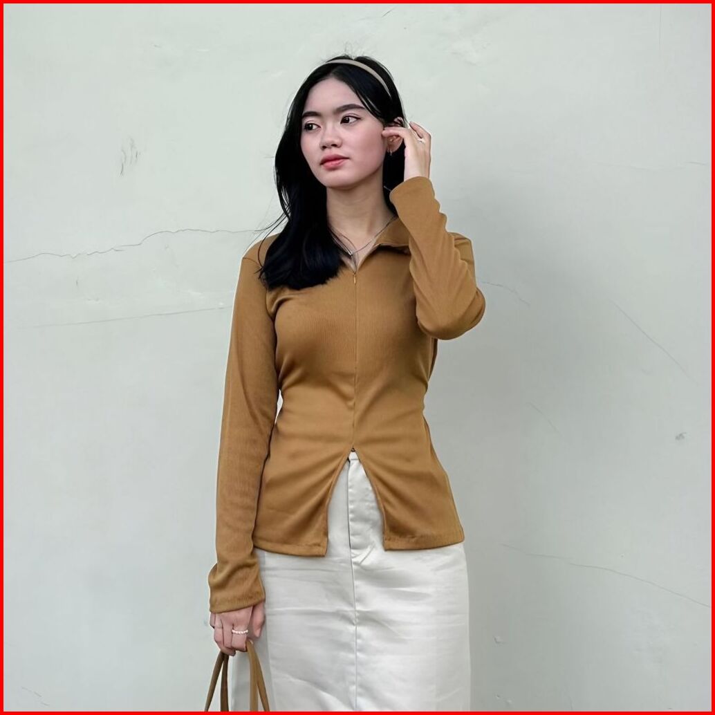 Orimoza Blouse Rib Knit Resleting Depan Valen