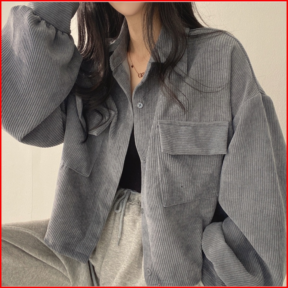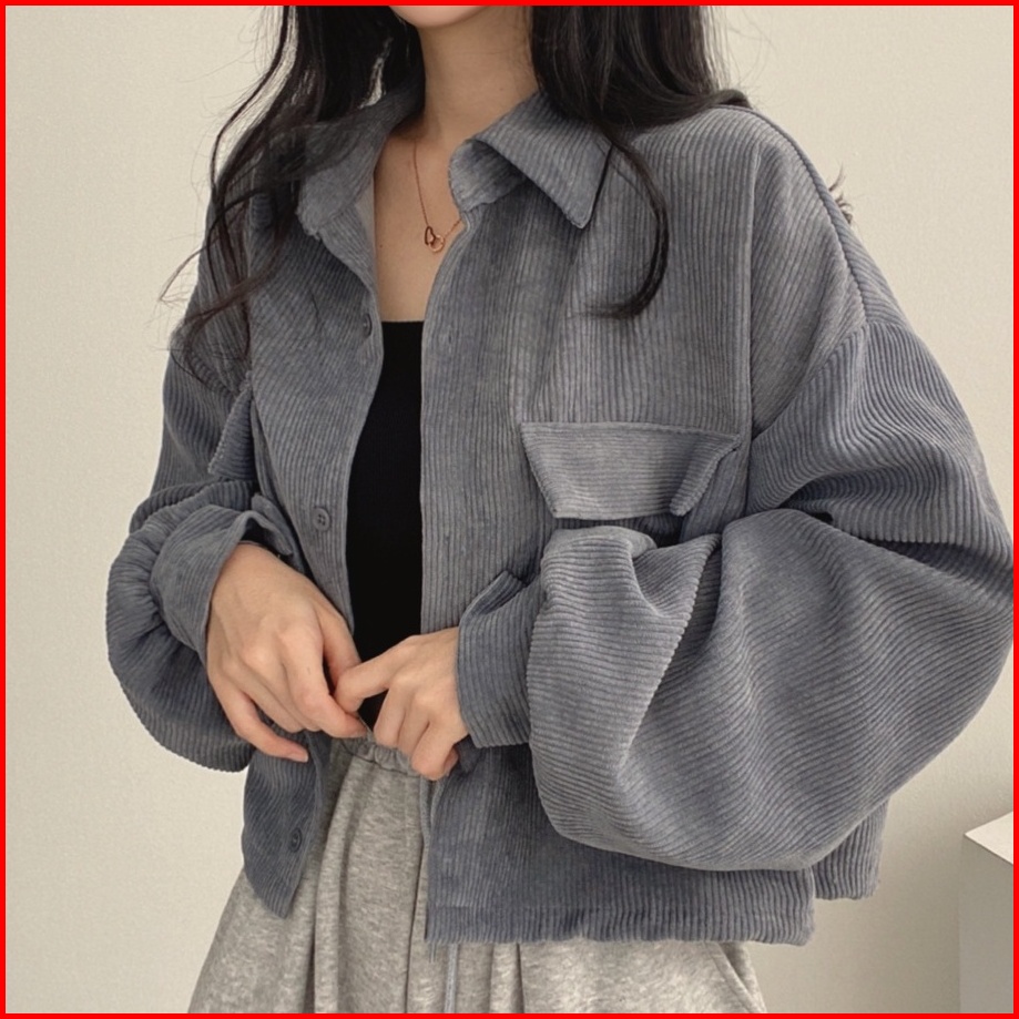 Jaket Crop Corduroy Wanita Korean Retro Style Outer Lengan Panjang