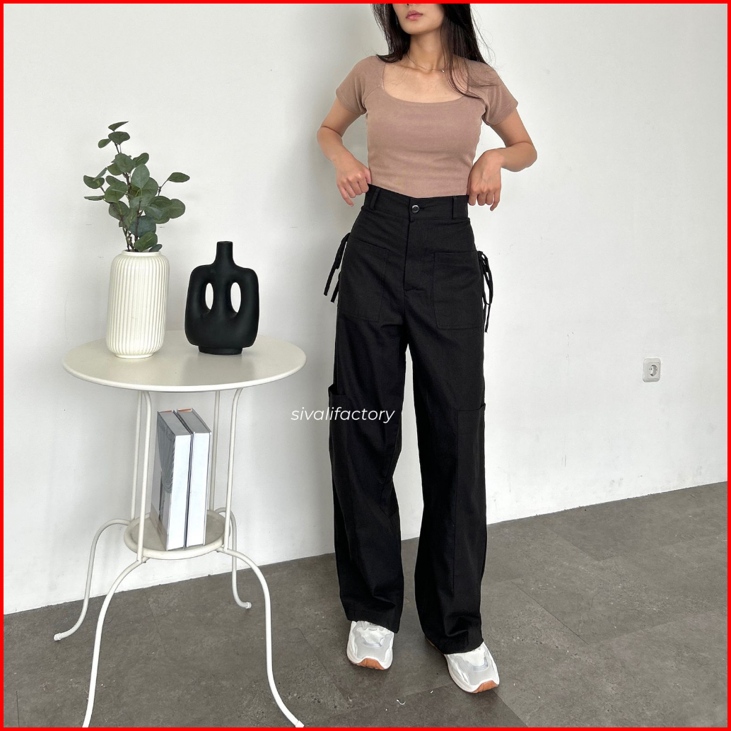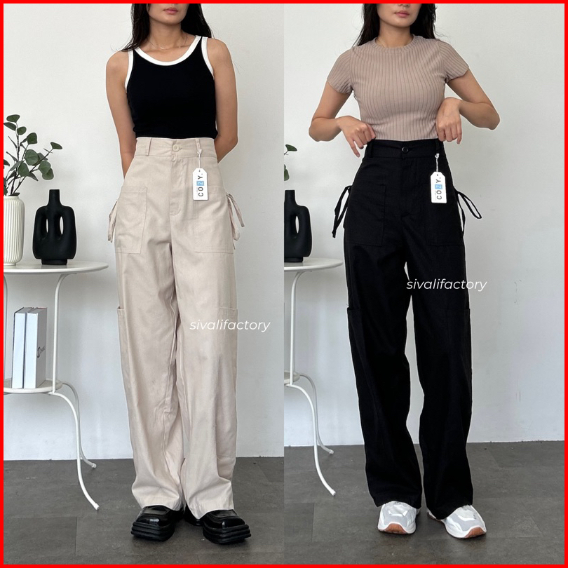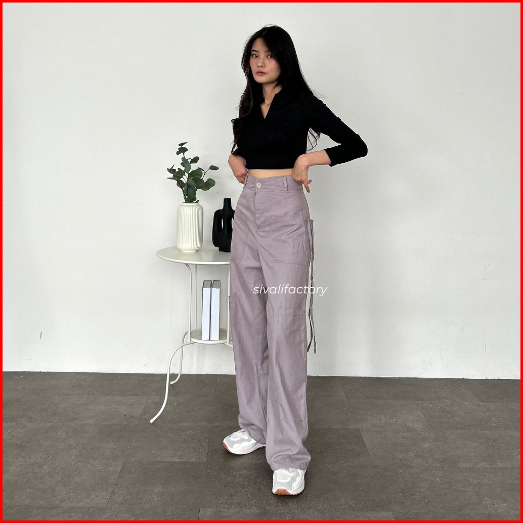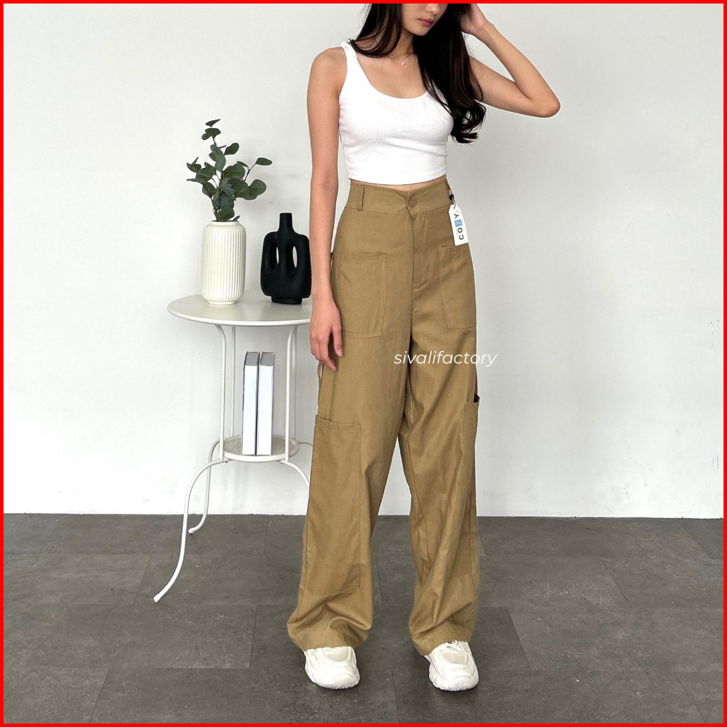 Sivali Clay Pants - Highwaist Loose Cargo - Celana Kargo Wanita - Baggy Pants