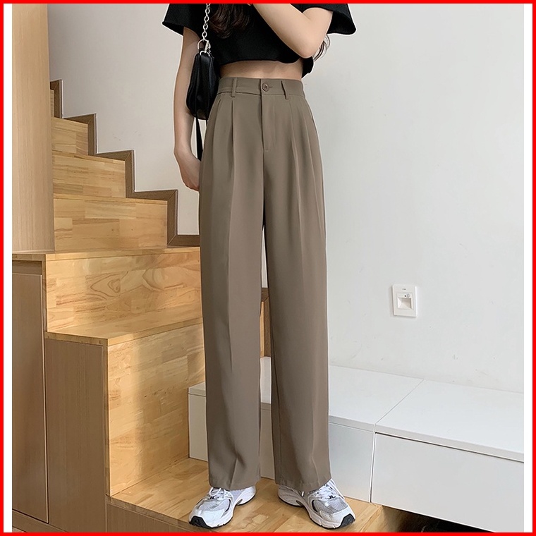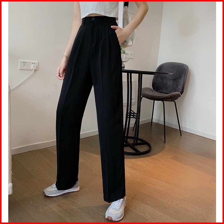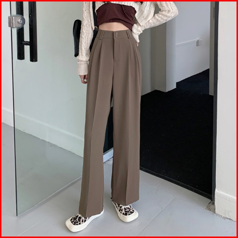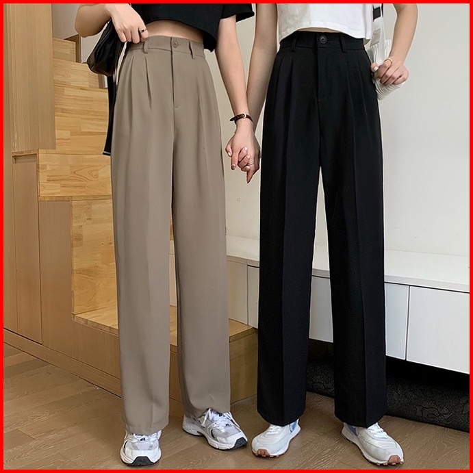 Xiaozhainv Celana Kulot Wanita Terbaru Kekinian Hitam Highwaist Korean Style Celana Kulot Highwaist Loose Pants Highwais