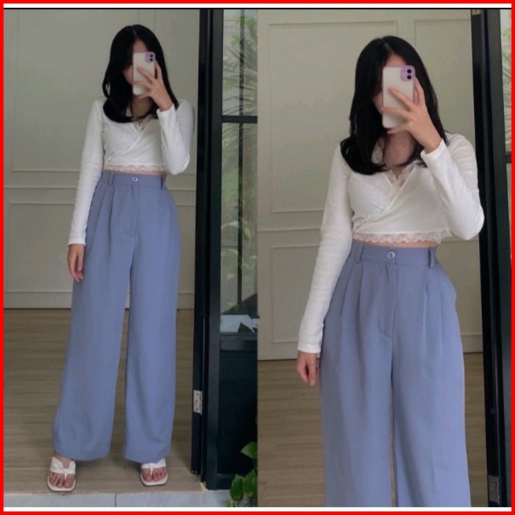 Loose Pants Celana Wanita Anti Kusut Prermium Jumbo Bb 40-100 Kg Celana Panjang Highwaist