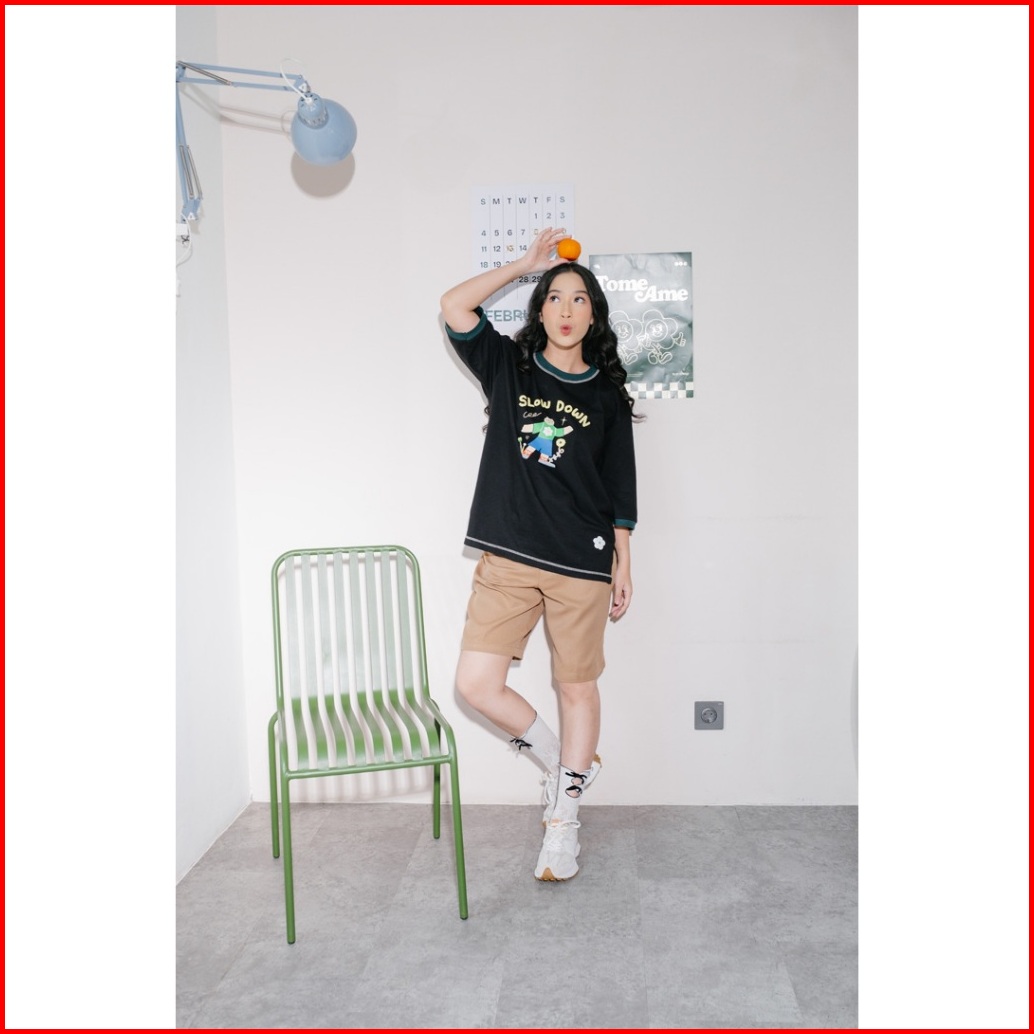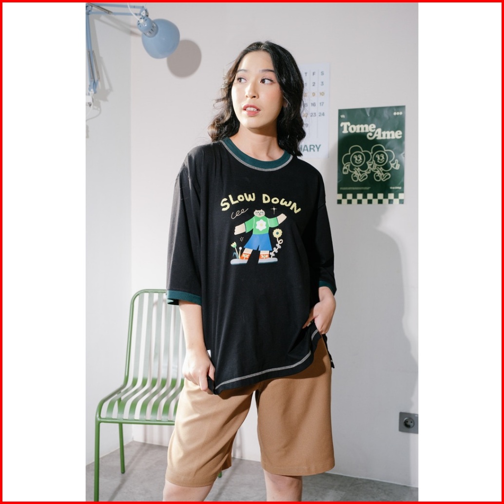 Tome Ame X The Fools Who Dream - Slow Down Oversize Tee Kaos Wanita Oversize Hitam