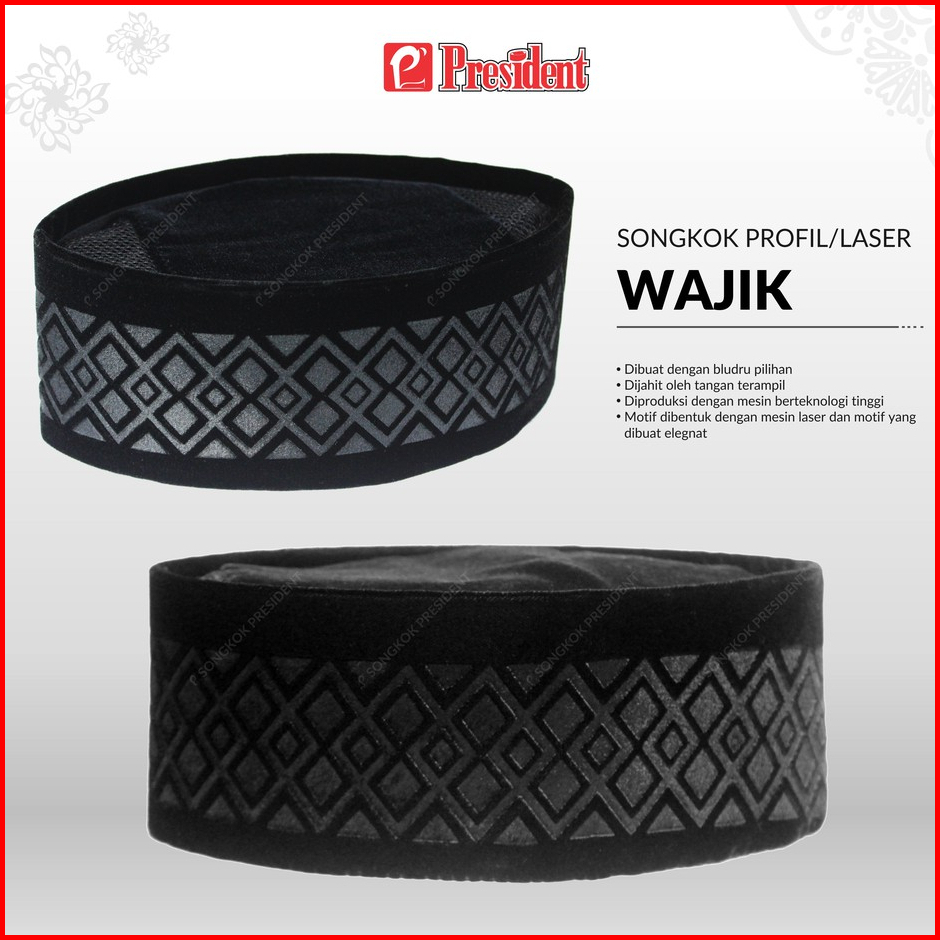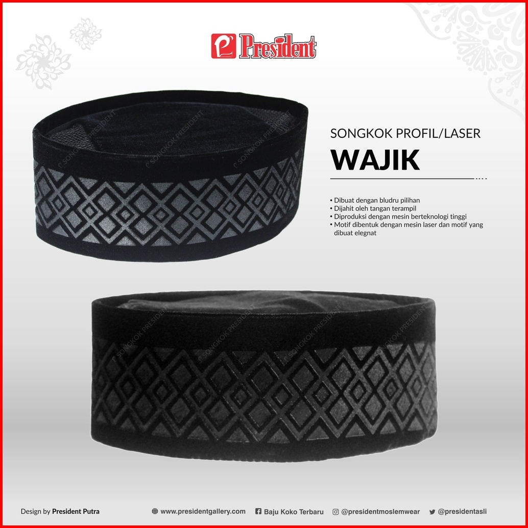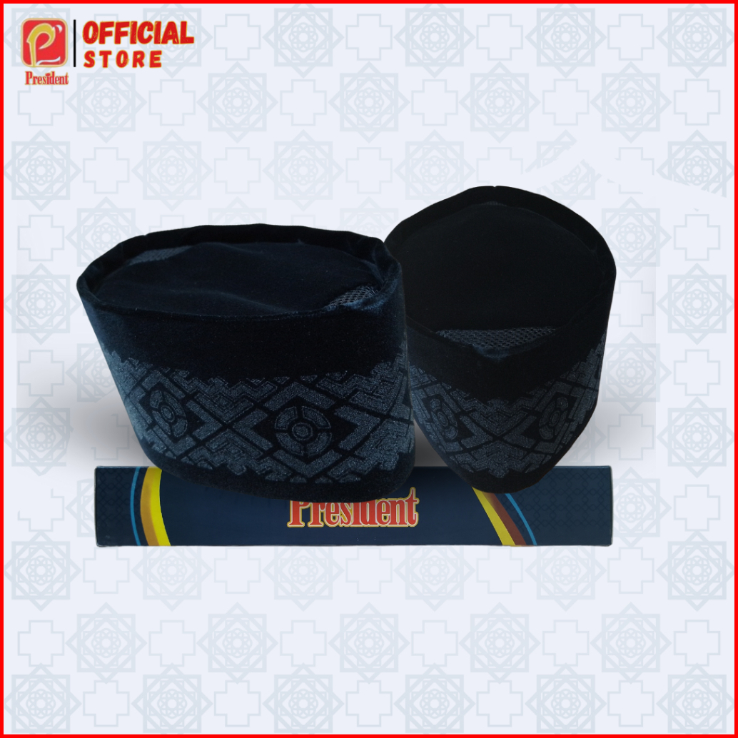 President - Songkok Hitam Peci Hitam Kopiah Hitam Motif Laser Profil Tipe Wajik Beludru Premium