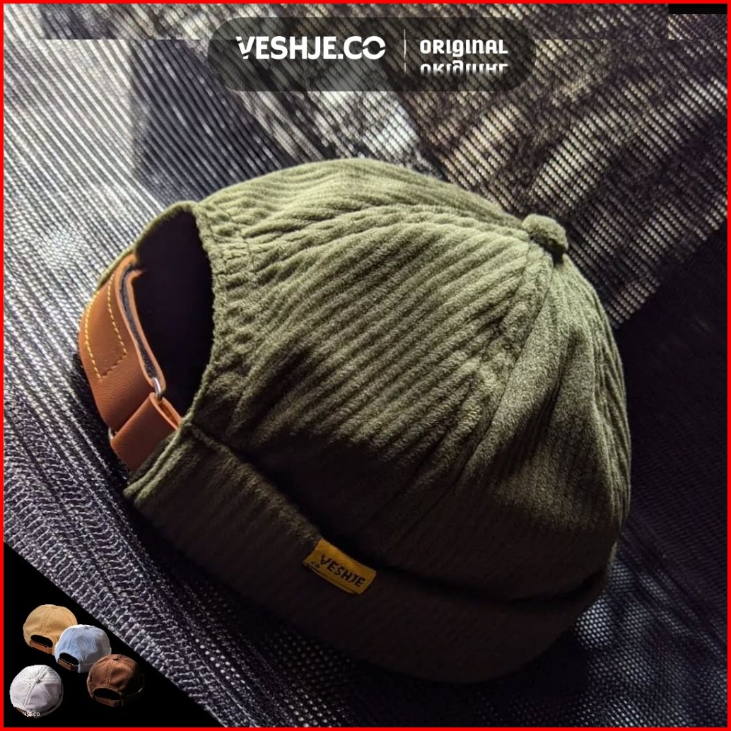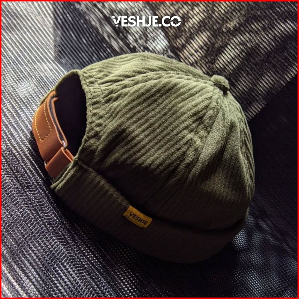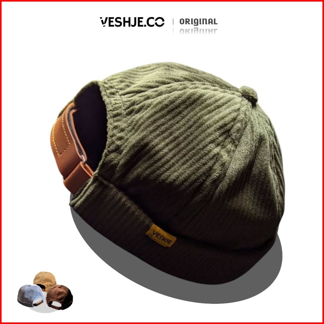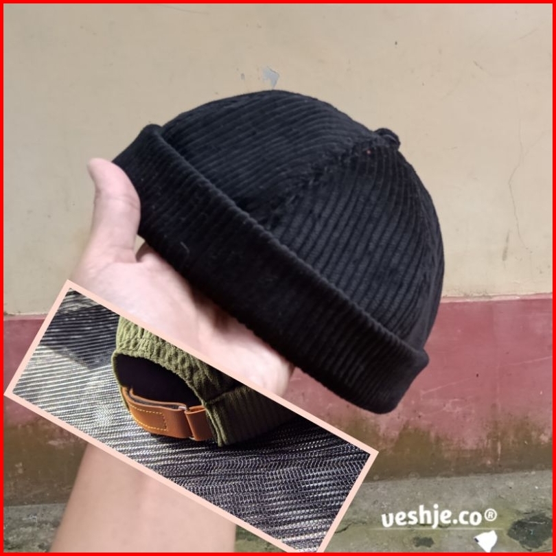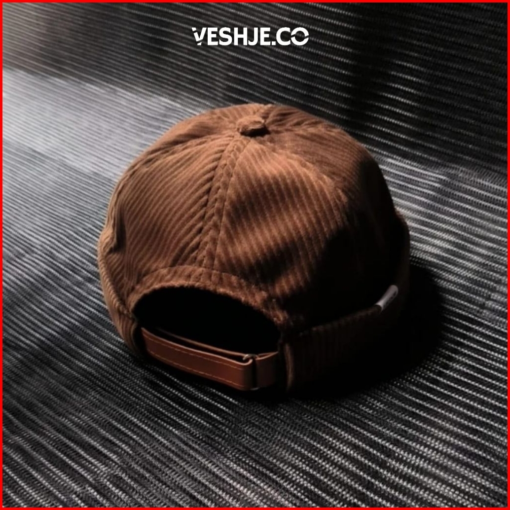 Veshje.co Miki Hat Peci Corduroy Salur Besar Strap Kulit Besi