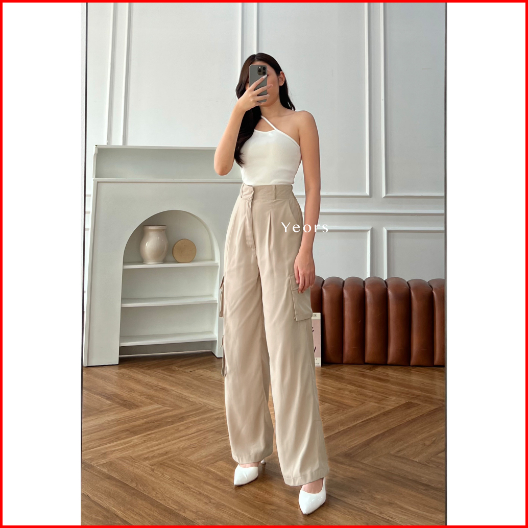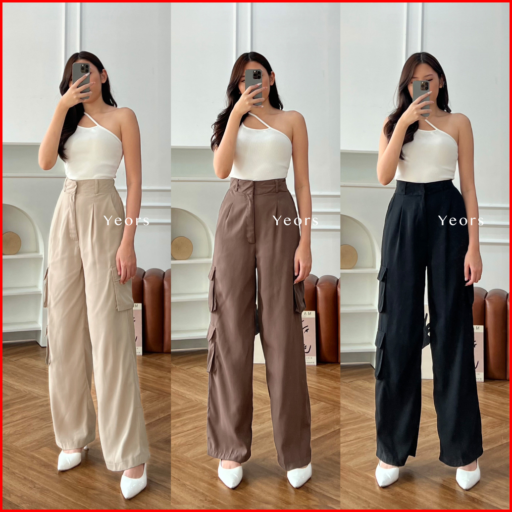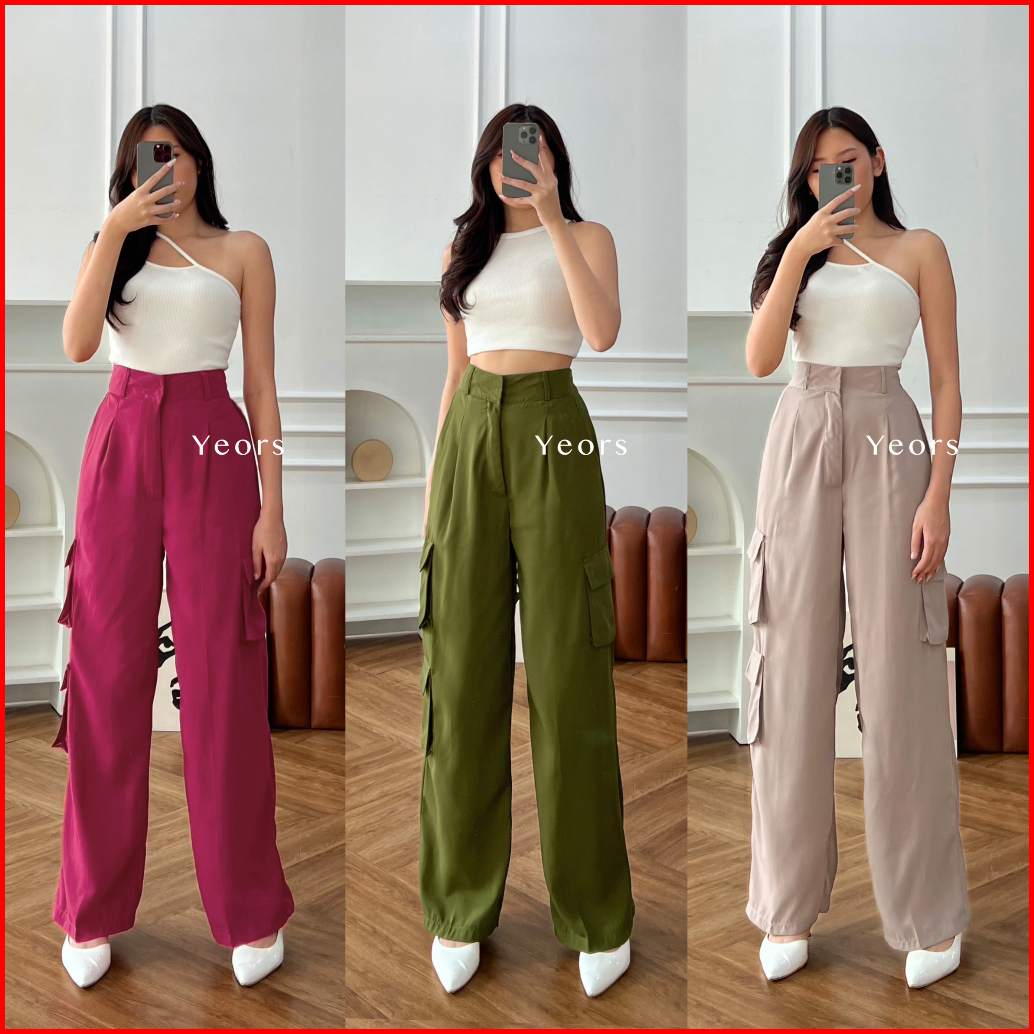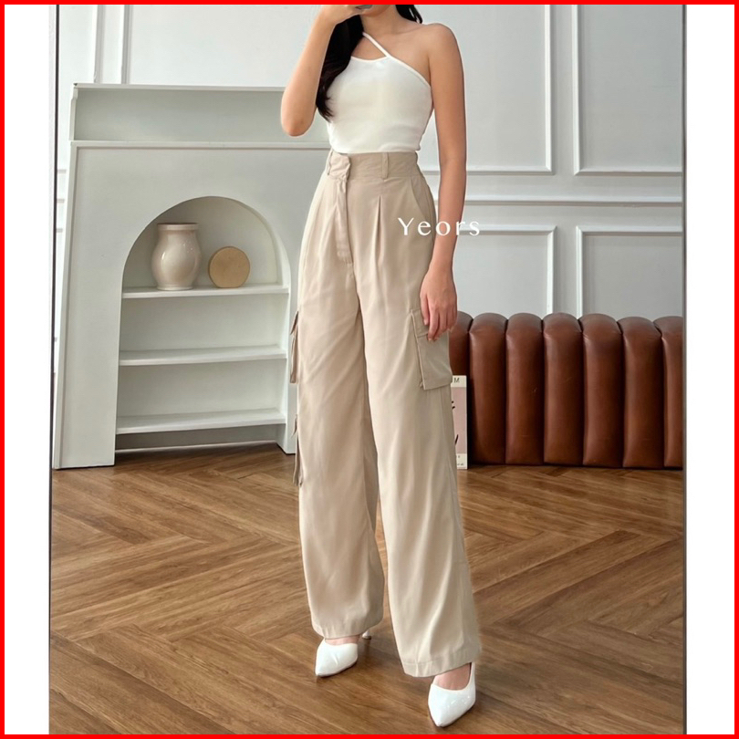 Yeors - Niki Cargo Pants - Wide Leg Highwaist Cullote - Celana Kargo Kulot Murah Basic Kasual Wanita - Loungewear Casual