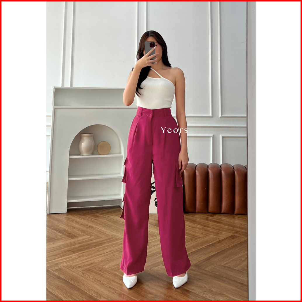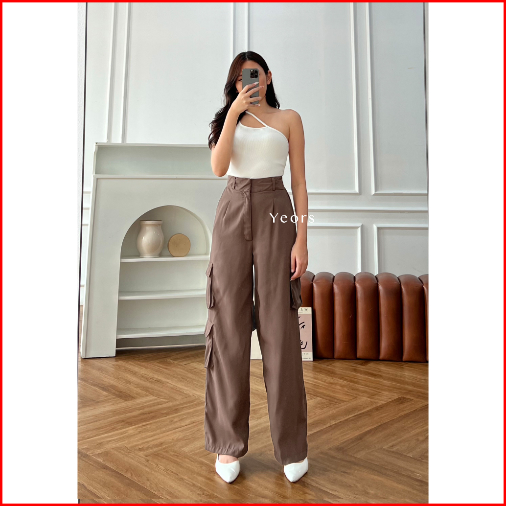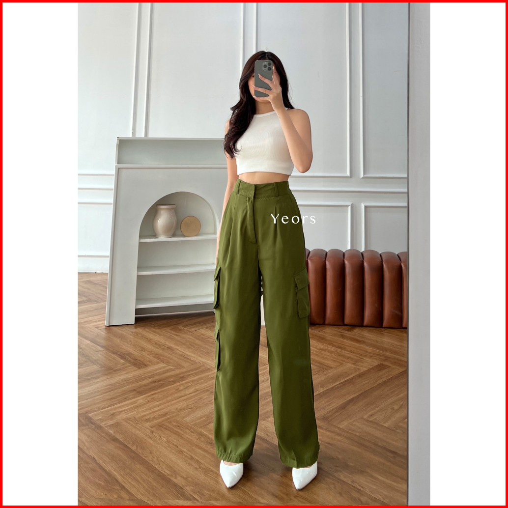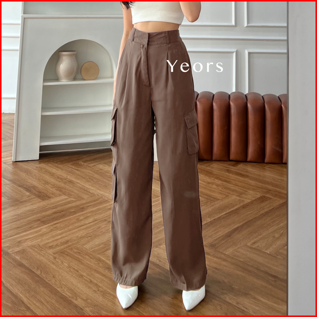 Yeors - Niki Cargo Pants - Wide Leg Highwaist Cullote - Celana Kargo Kulot Murah Basic Kasual Wanita - Loungewear Casual