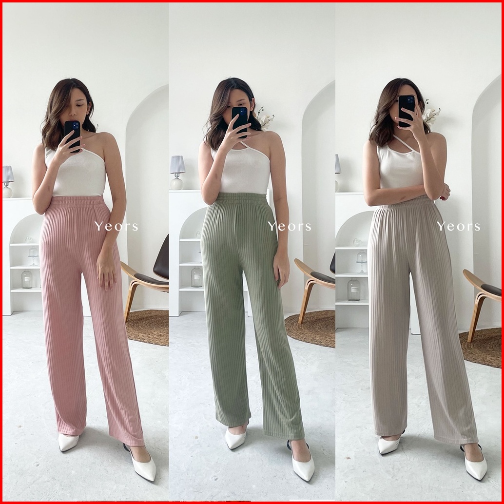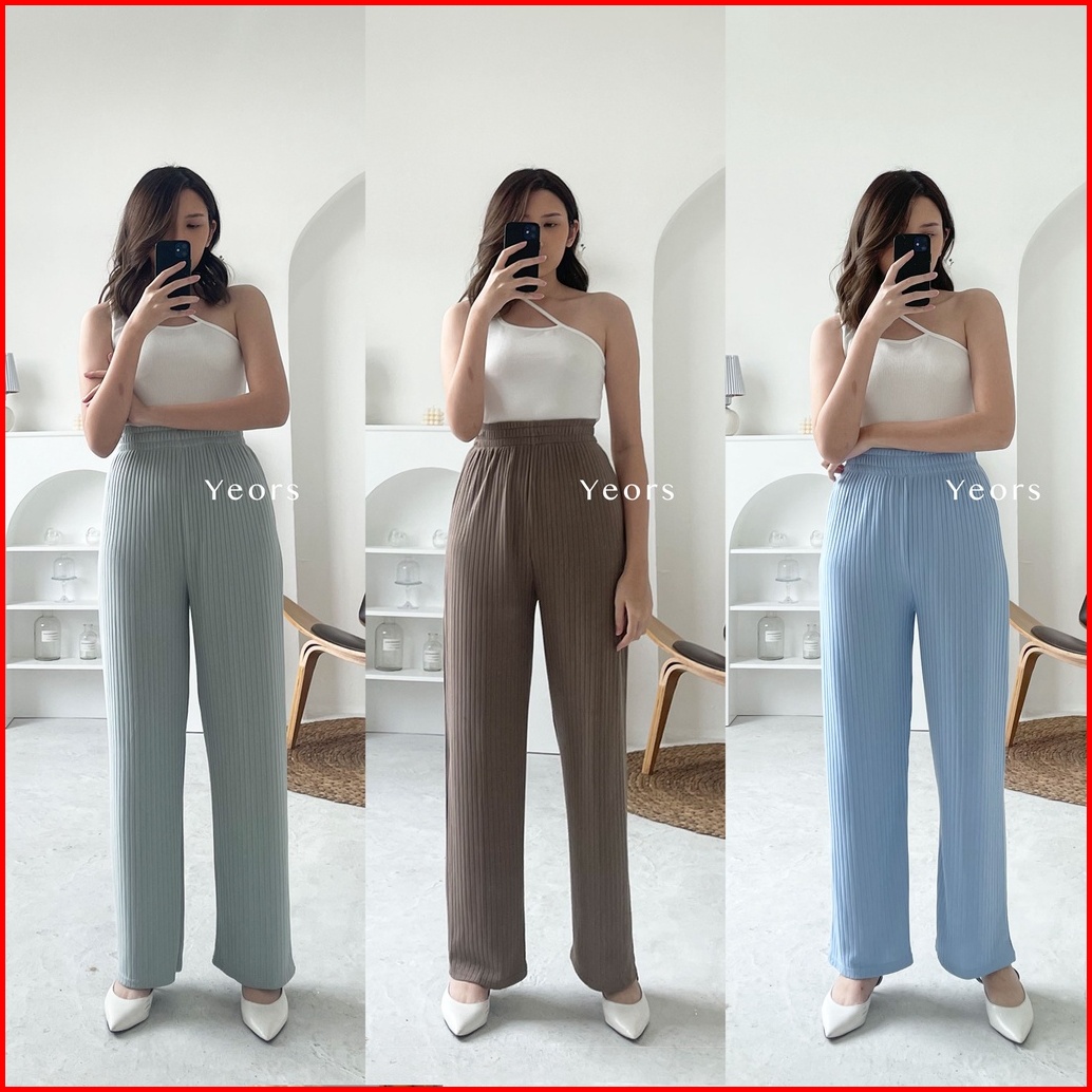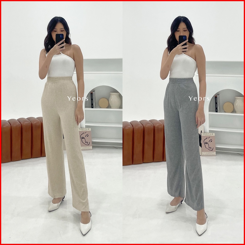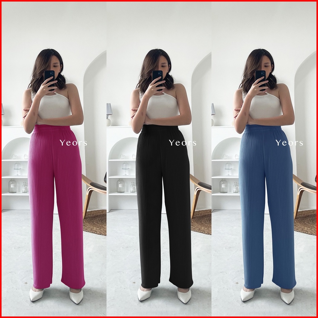 Yeors - Celana Murah Berkualitas Kulot Knit Premium - Long Cullote Meera Pants - Korean Loose Pants Trousers Wanita - Lo