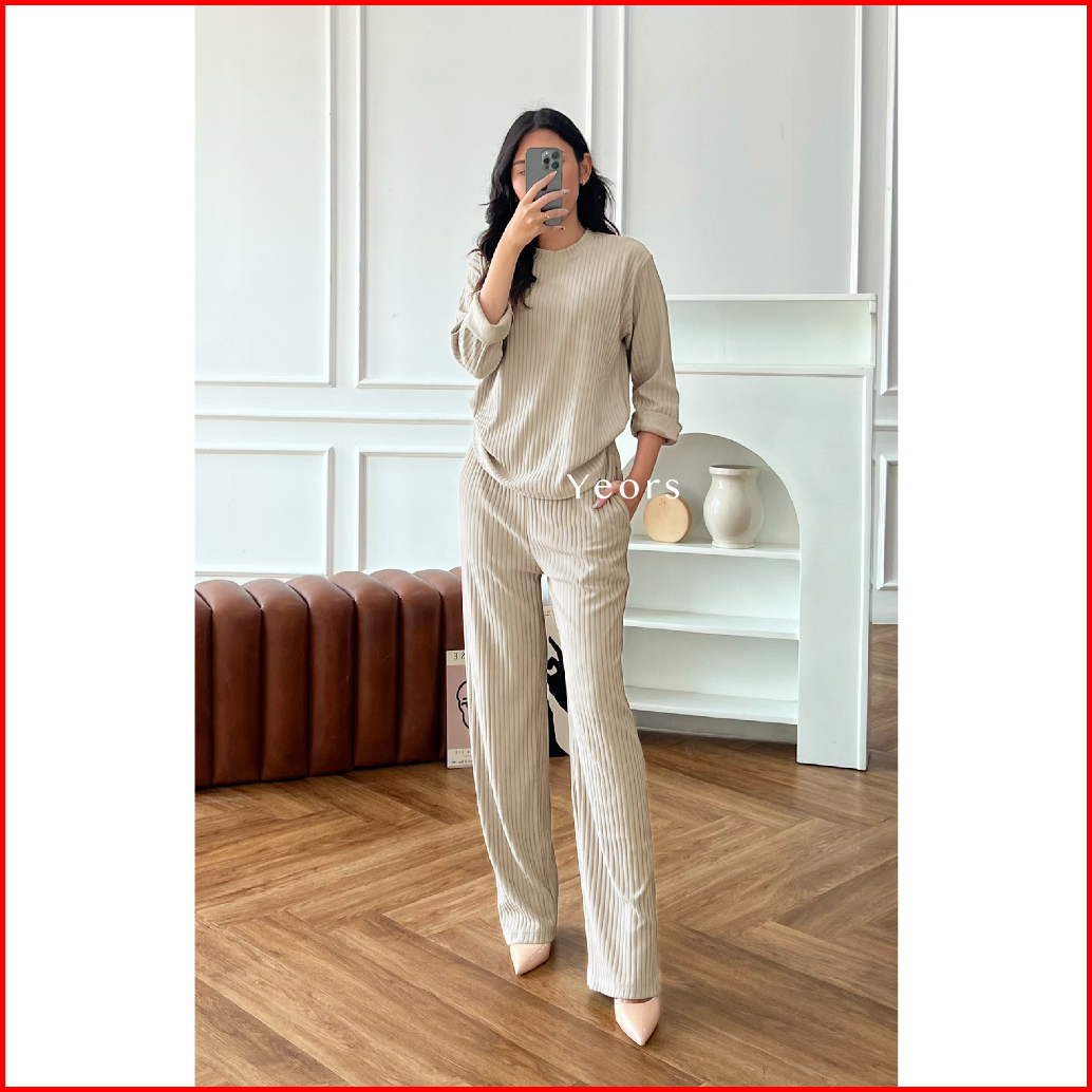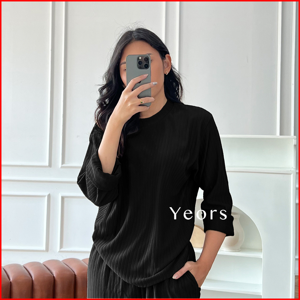 Yeors - Rib Knit Lily Top Hanya Atasan - Korean Knitwear - Loungewear - Kaos Murah Berkualitas Rib Knit Premium - Baju W