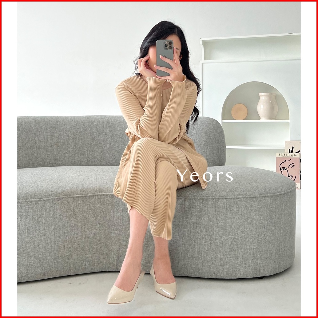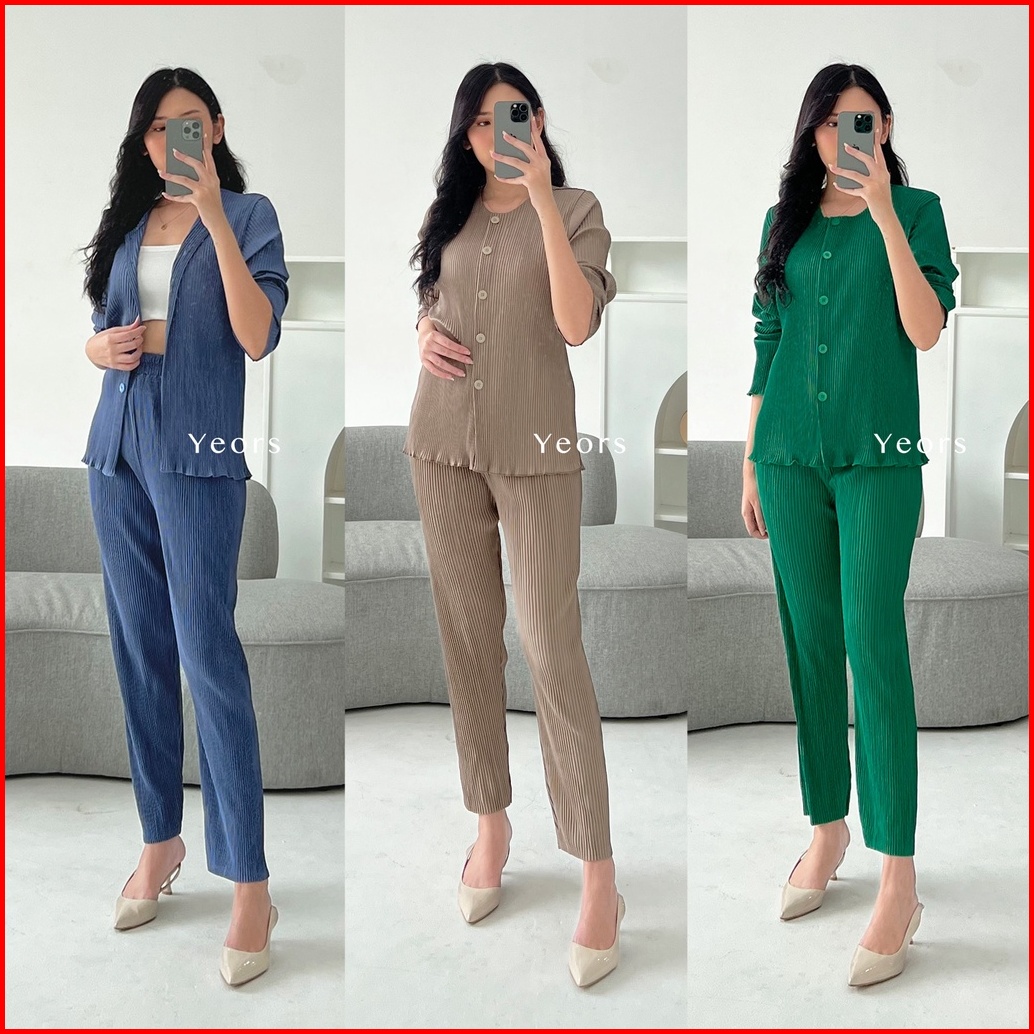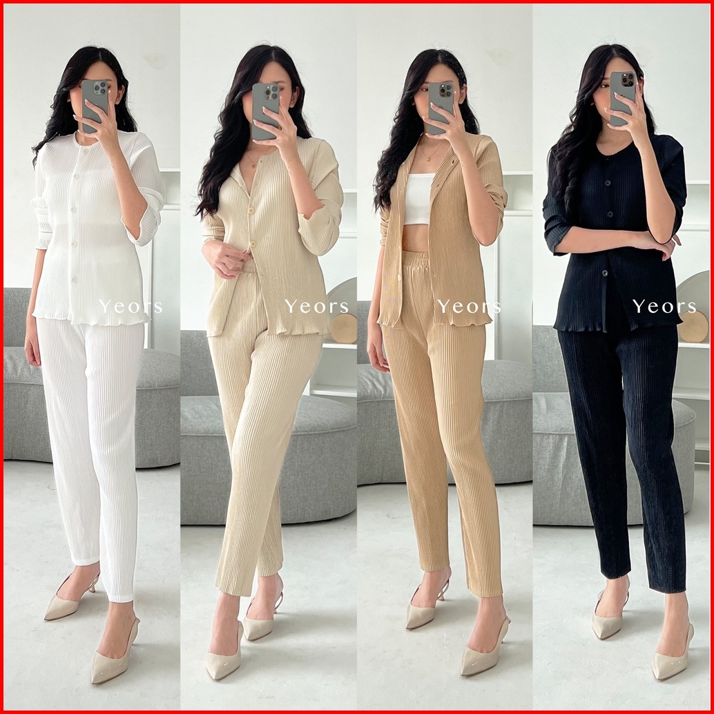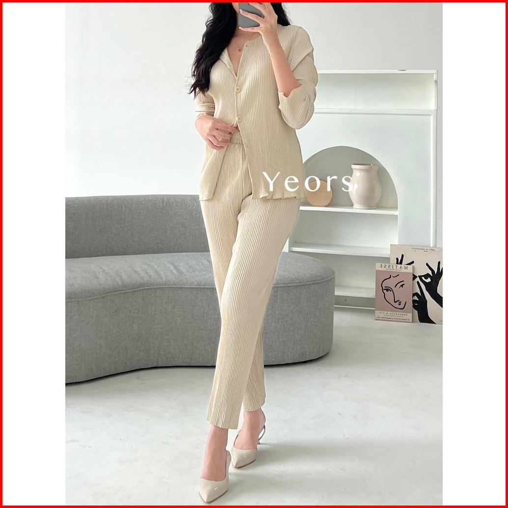 Yeors - Zea Set Korean Cardigan And Plisket Pants Premium - Baju Atasan Dan Celana Wanita Murah Berkualitas - Korean Loo